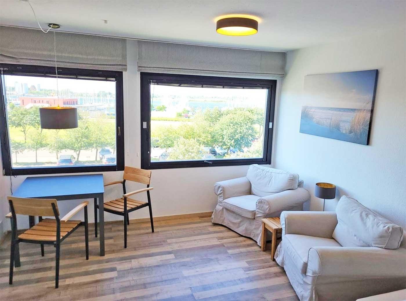 Genießen Sie Ihren Urlaub am Südstrand mit Blick auf den Hafen und den Binnensee.