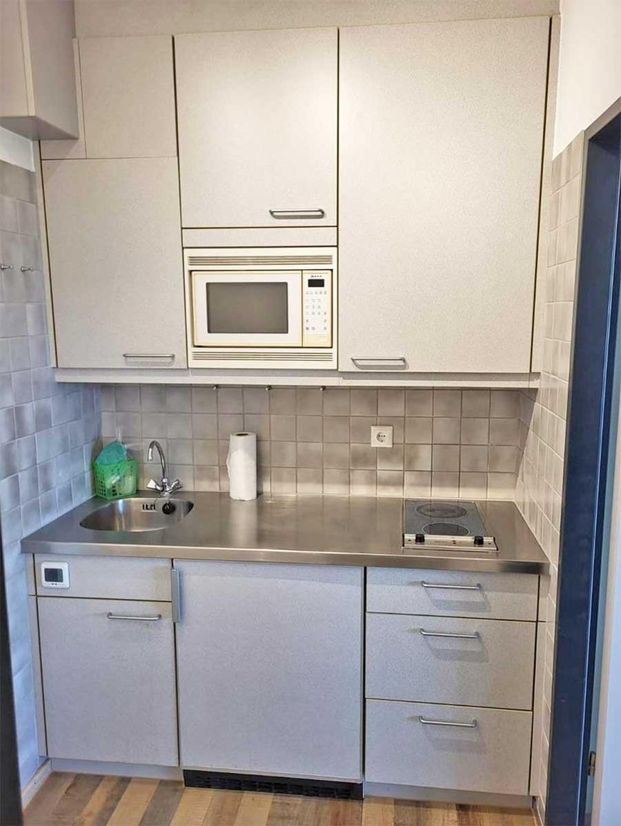 Die Pantryküche ist ausgestattet mit einem Kühlschrank, einem 2-Platten-Herd und einer Mikrowelle.