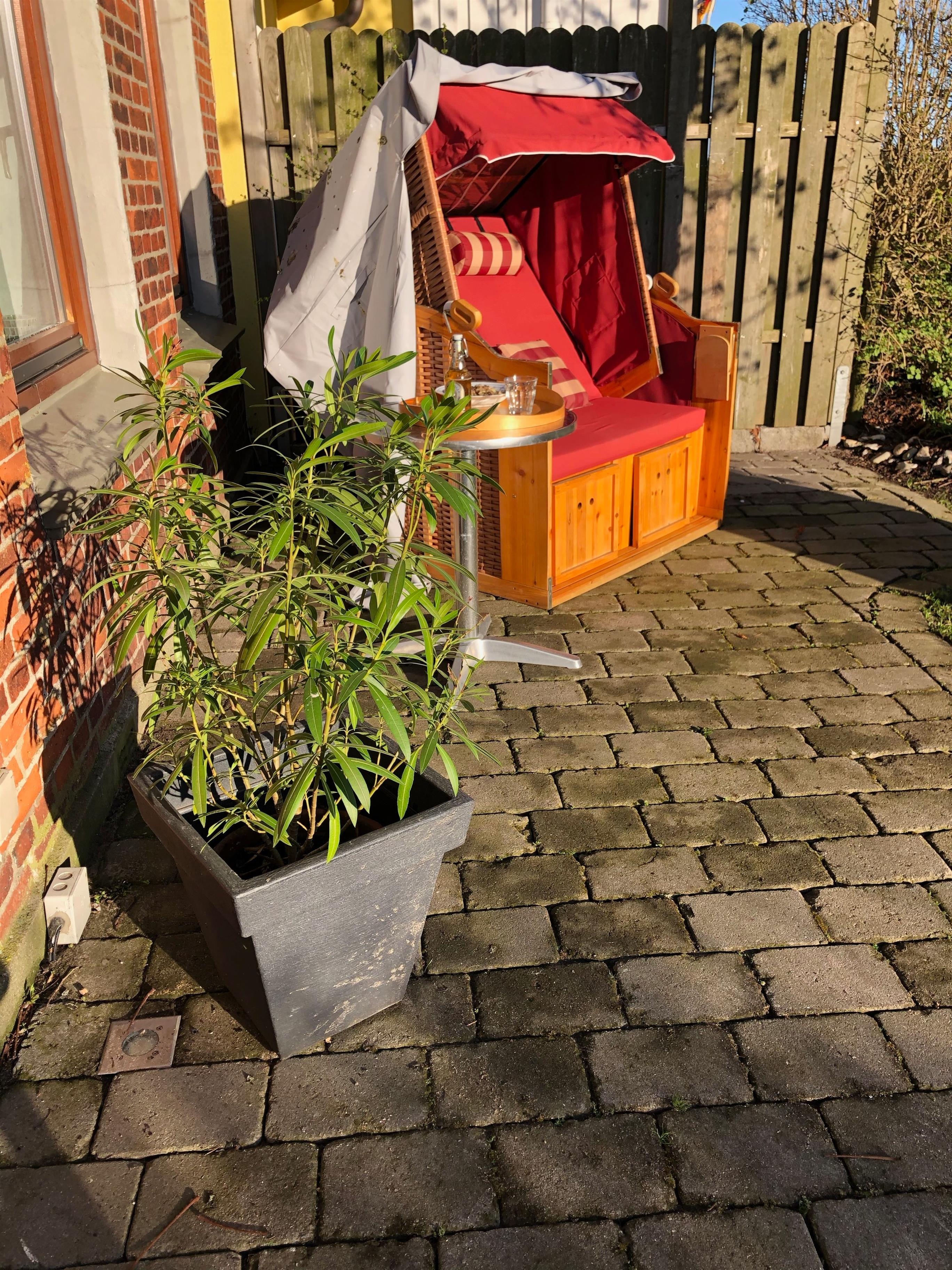 Der gepflegte Garten bietet viele Möglichkeiten für Jung und Alt und ist komplett ausgestattet mit Strandkorb, Gartenmöbeln, Sonnenschirm, Grill und Feuerschale.