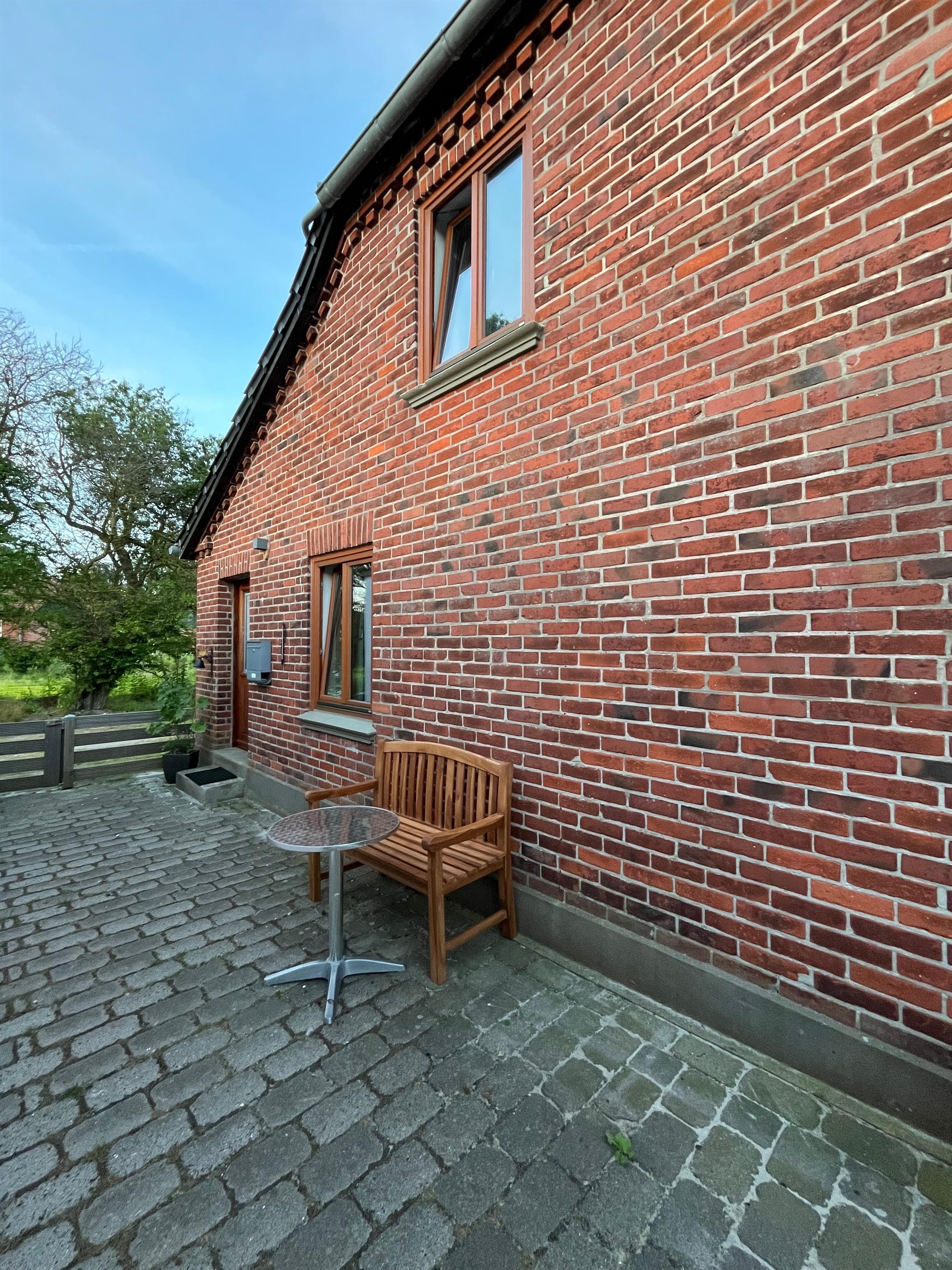 Zur Wohnung gehört eine große sonnige und windgeschützte Terrasse im gepflegten Garten - mit Liegestühlen, Gartenmöbeln und Sonnenschirm, sowie ein eigener PKW-Stellplatz und viel Platz für Fahrräder und Sportgeräte.