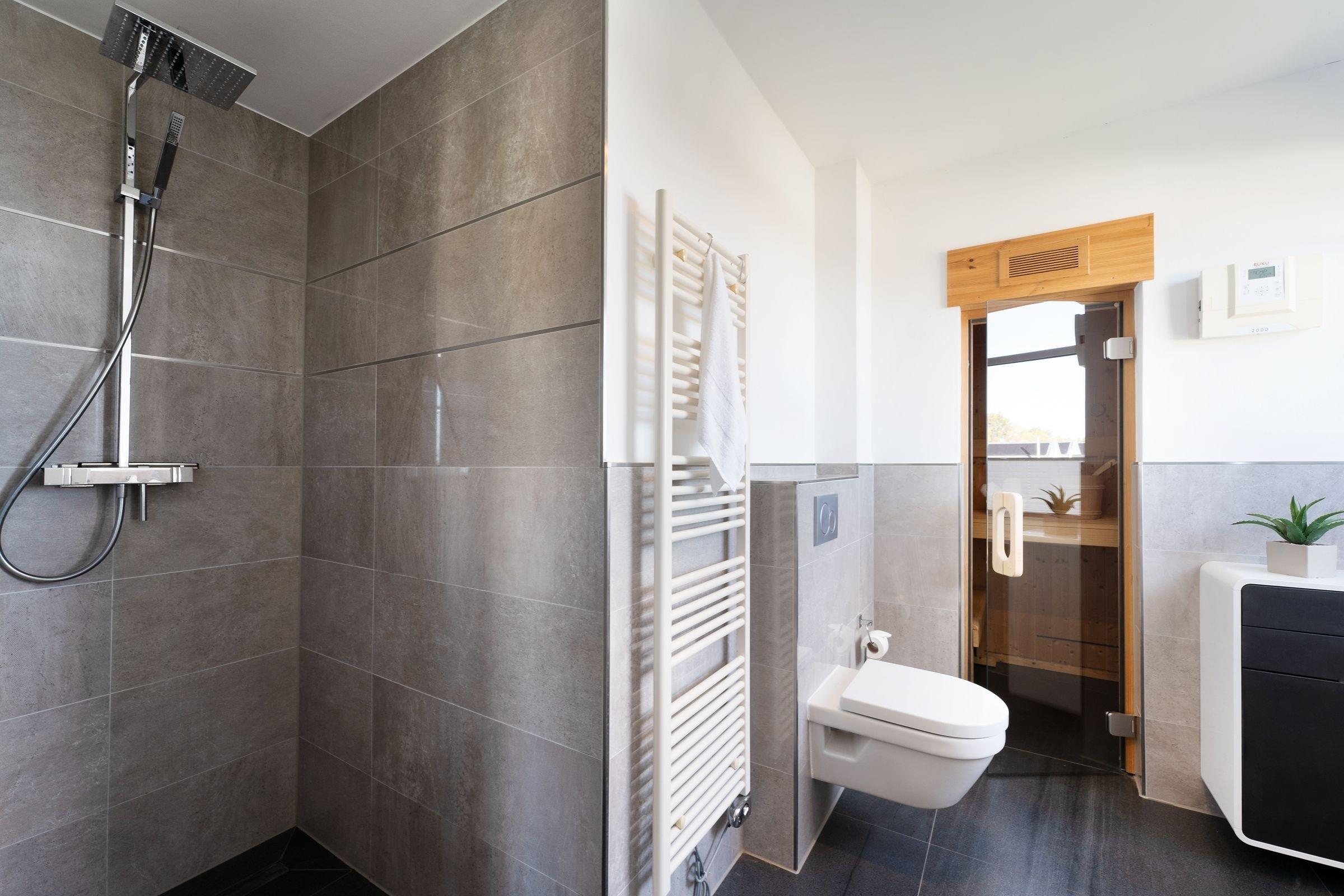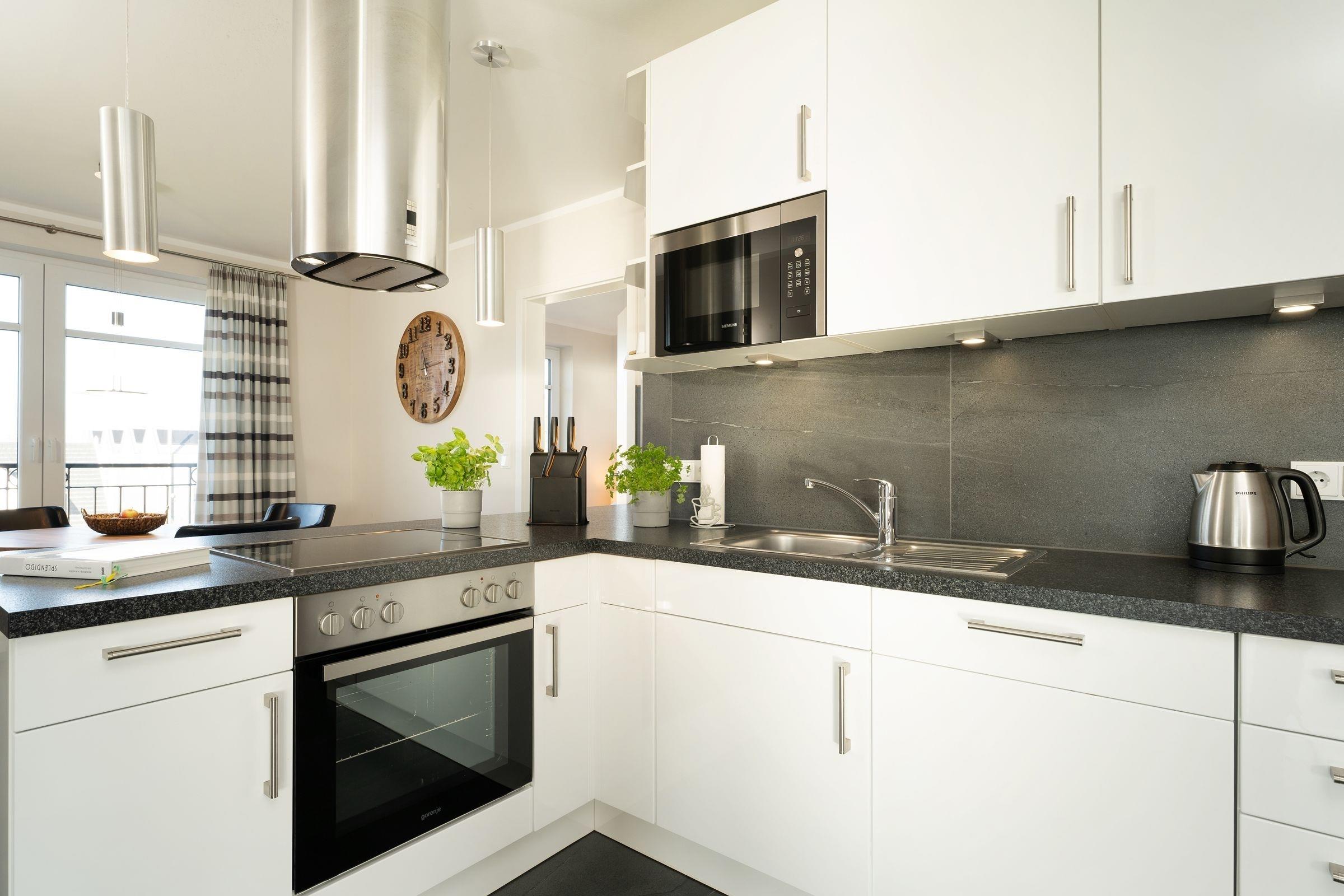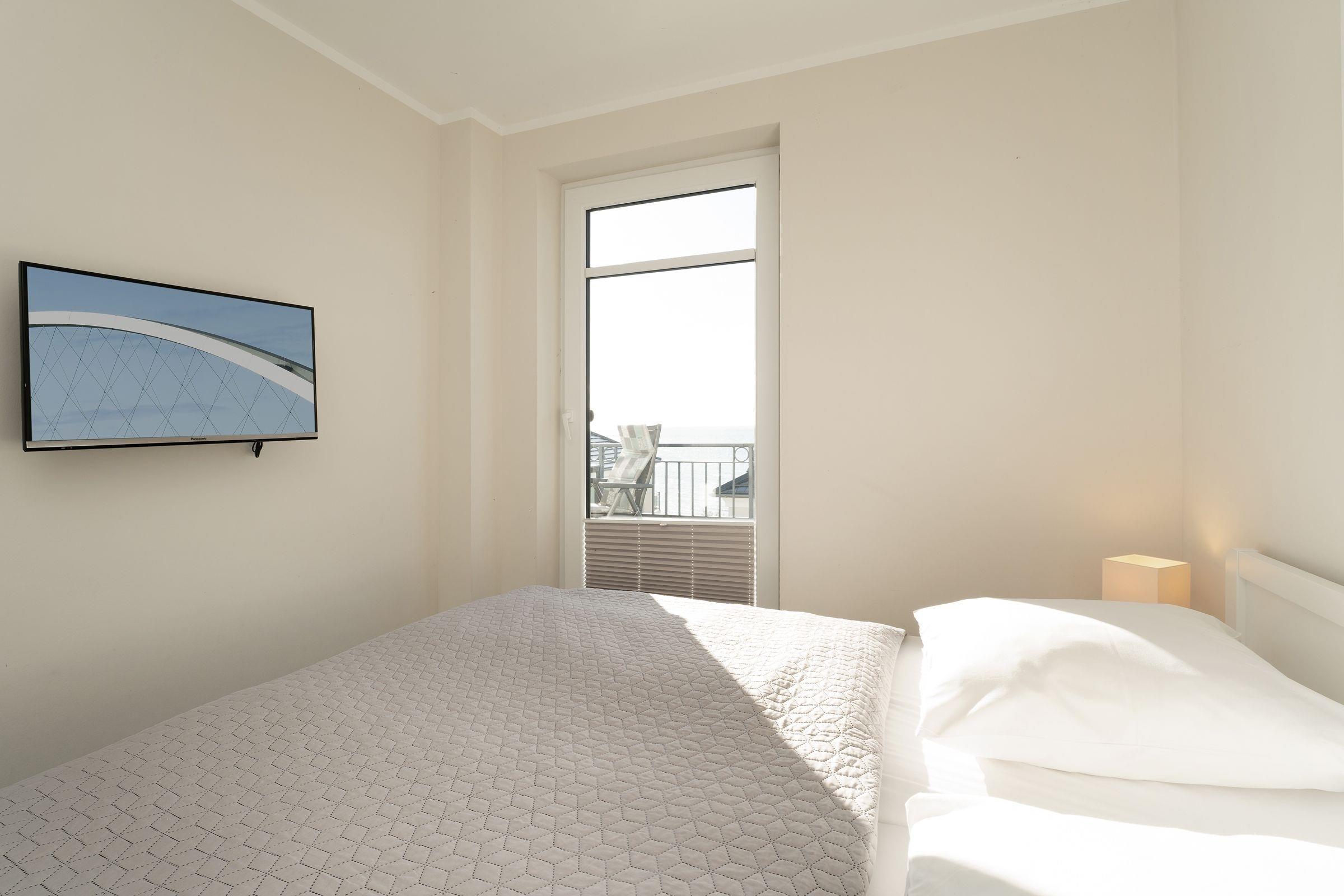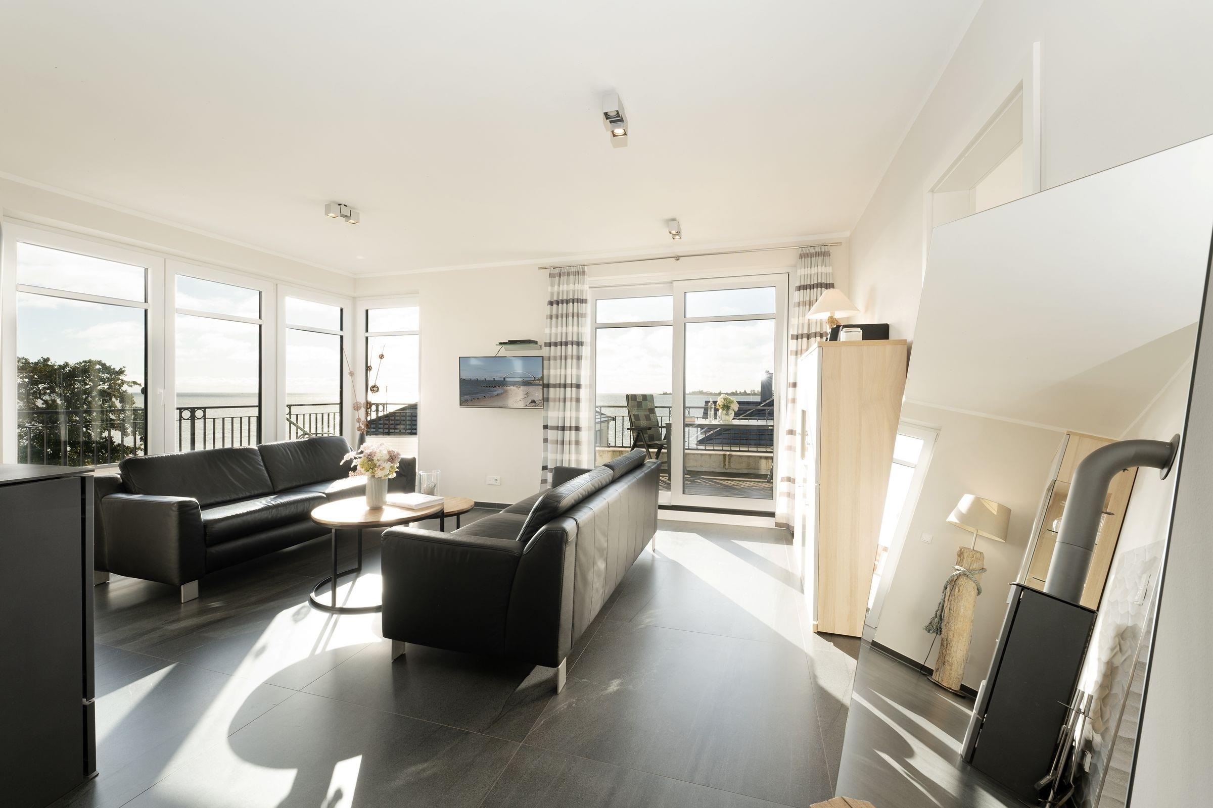 Nur rund 30 Meter vom Strand entfernt befindet sich diese traumhafte Wohnung. Lichtdurchflutete Fenster mit Blick auf die Ostsee und eine moderne, offene und sehr gut ausgestattete Küche mit angrenzendem Ess- und Wohnbereich laden Sie zum Entspannen ein. Für die Nacht stehen Ihnen zwei Schlafzimmer mit jeweils einem Doppelbetten und einem TV-Gerät zur Verfügung. Das hochwertige tageslichthelle Badezimmer punktet mit einer bodengleichen Dusche. Zusätzlich gibt es ein Gäste-WC. Die Wohnung ist komplett gefliest und mit einer Fußbodenheizung ausgestattet. Das Highlight der Wohnung ist sicher die ca. 35 m² große Dachterrasse mit Panorama-Meerblick und eigenem Strandkorb. Von hier können Sie sowohl den Sonnenaufgang als auch den Sonnenuntergang beobachten. Sonne pur - den ganzen Tag!