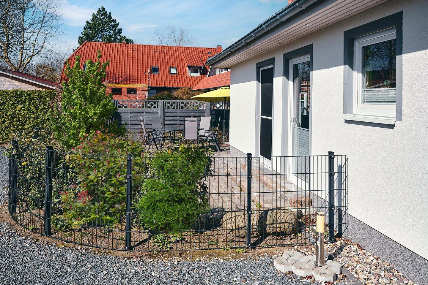 Das ebenerdige Domizil verfügt über 1 komb. Wohn-/Essbereich mit Kamin, 1 offene Küche, 3 Schlafräume, 2 Duschbäder, 1 Sauna sowie einen ca. 450 m² großen komplett eingezäunten Garten.