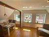 Loft: (Køkken(elkedel, brødrister, komfur, kaffemaskine, ovn, mikrobølgeovn, opvaskemaskine , køle-fryseskab), stue / spisestue(Fjernsyn, spisebord, sofahjørne), soveværelse(dobbeltseng), soveværelse(enkeltseng), badeværelse(bruser, håndvask, toilet, føntørrer)) have, havemøbler, grill, parkering