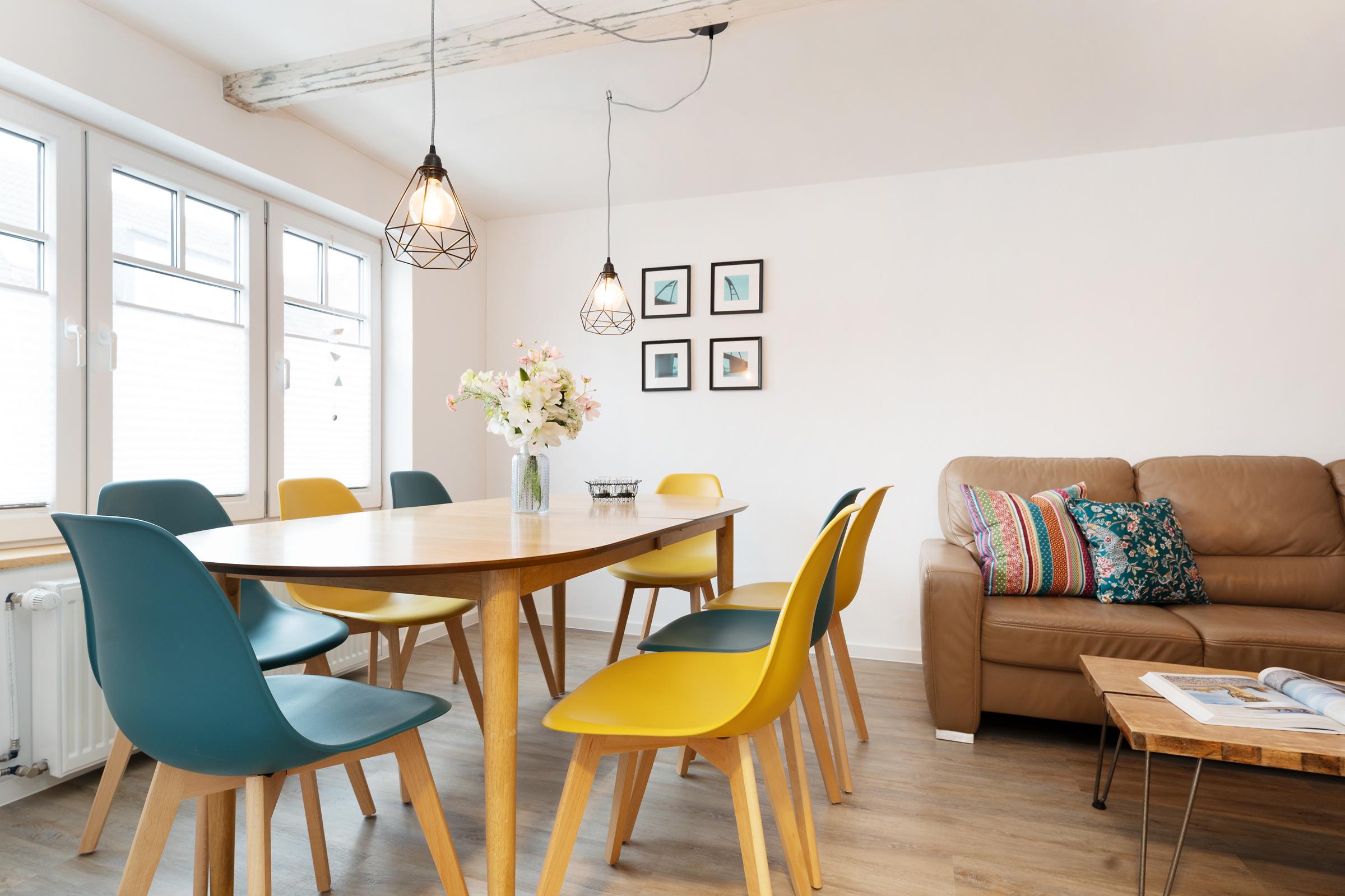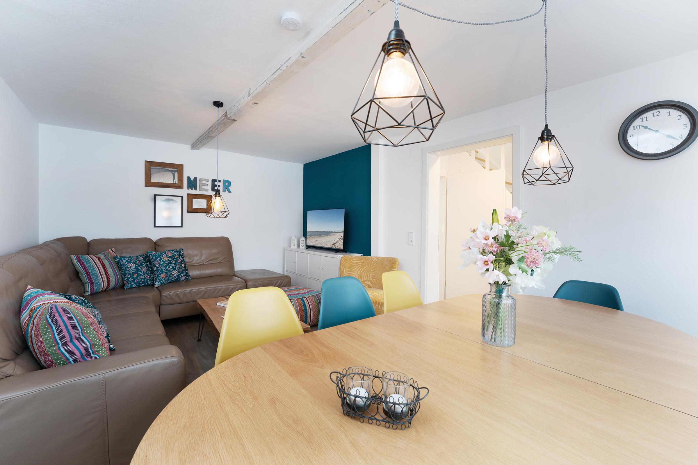 Die Küche ist bestens ausgestattet mit Backofen, Geschirrspülmaschine, Kühlschrank, Kaffeemaschine und weiteren Annehmlichkeiten. Der angrenzende Essbereich bietet ausreichend Platz für gemeinsame Mahlzeiten. Drei Schlafzimmer sorgen für erholsame Nächte: Ein Schlafzimmer ist mit einem Doppelbett ausgestattet, ein weiteres mit einem zusätzlichen Doppelbett und im dritten Zimmer finden Sie zwei Einzelbetten. Damit eignet sich das Haus ideal für Familien oder befreundete Paare.