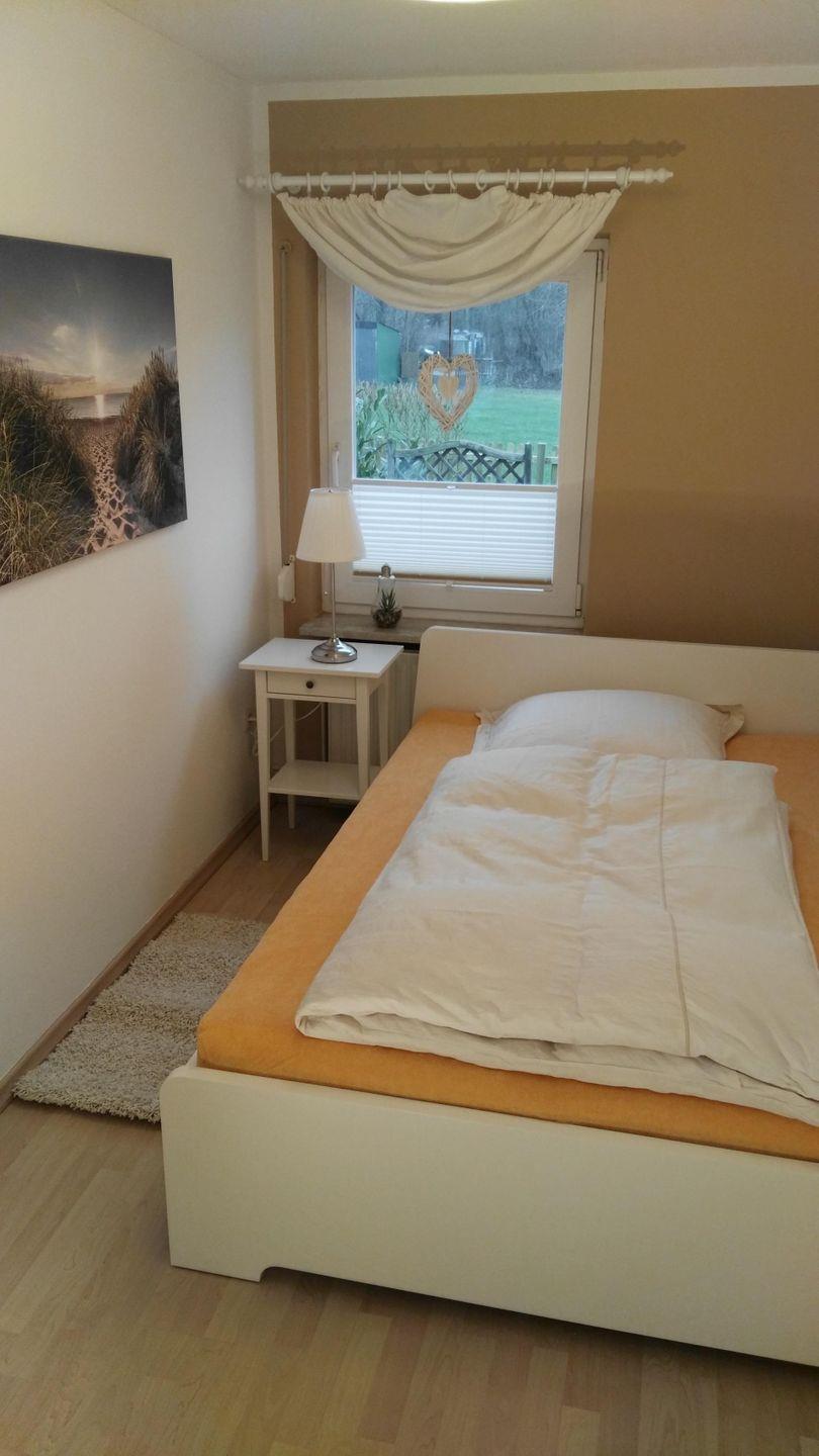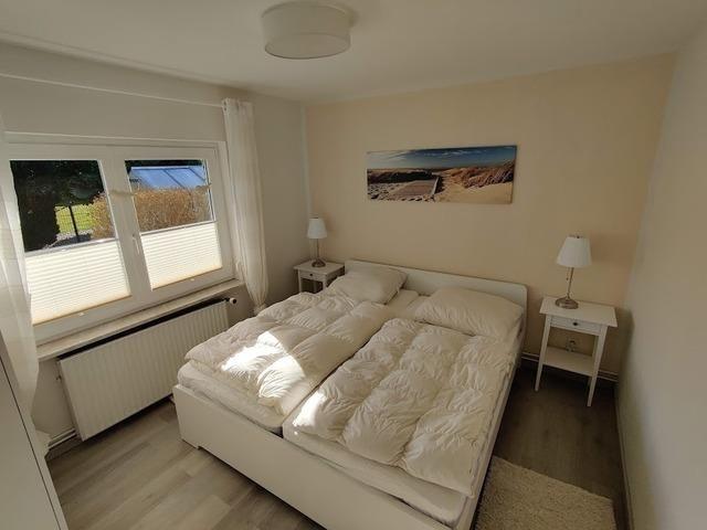 In dem Elternschlafzimmer befindet sich 1 Doppelbett 1,80 x 2,00 m und im zweiten Schlafzimmer ein Bett 1,40 x 2,00 m , außerdem sind in beiden Schlafzimmer Nachtschränkchen und Kleiderschränke vorhanden.