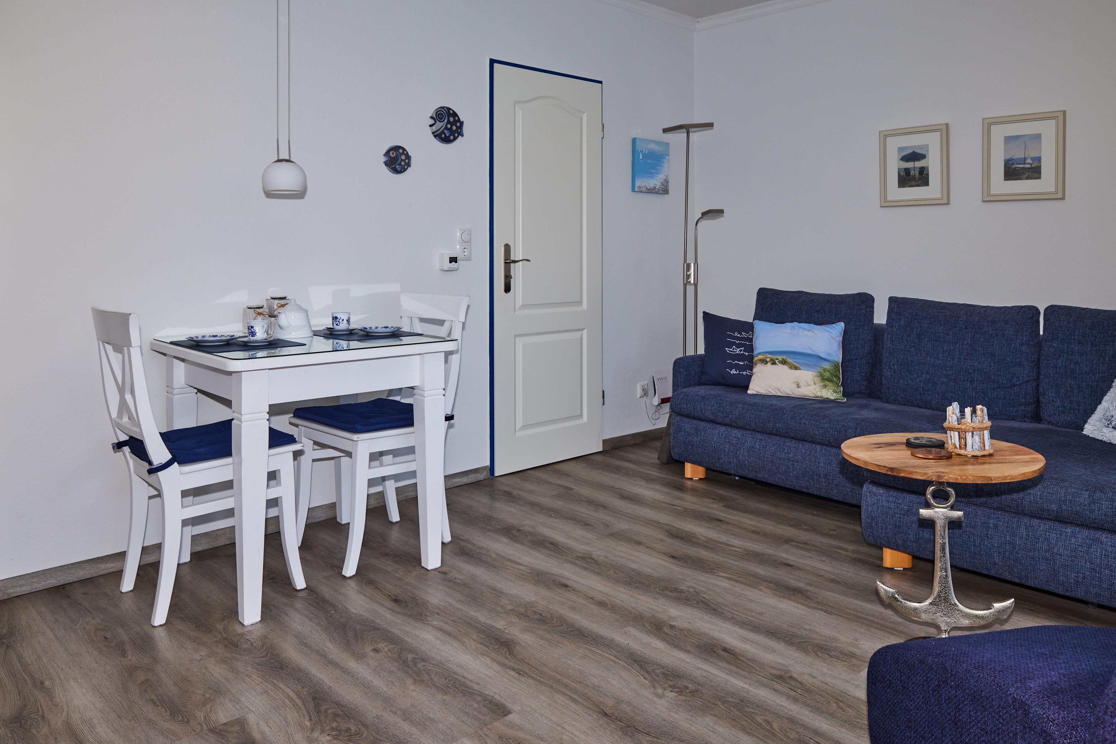 Die gemütliche Einrichtung im maritimen Landhausstil bietet eine Atmosphäre zum Entspannen.