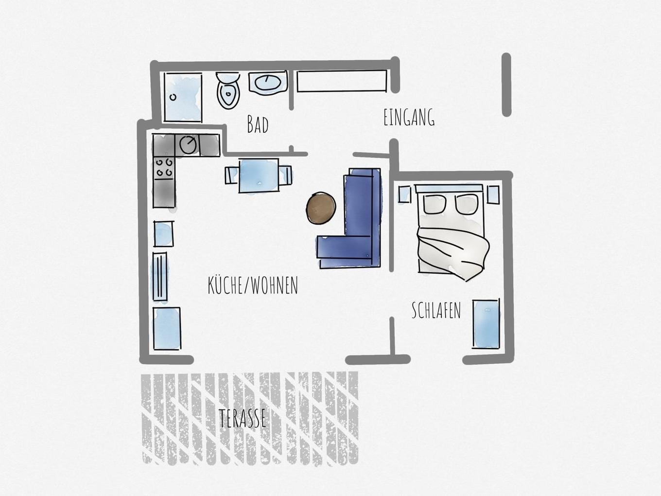 Das Wohnzimmer ist zeitgemäß mit Smart TV und Internetradio ausgestattet. WLAN ist selbstverständlich kostenlos. Die Couch ist als Schlafgelegenheit ausziehbar.