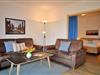 Sie besteht aus einem großen Wohnraum mit separater Schlafzimmernische, Kinderzimmer, Küchenzeile, Dusche/WC und ist für bis zu 4 Personen eingerichtet. Die Terrasse erstreckt sich über die gesamte Südfront. Der Internetzugang in der Ferienwohnung (W-Lan) ist kostenlos verfügbar.