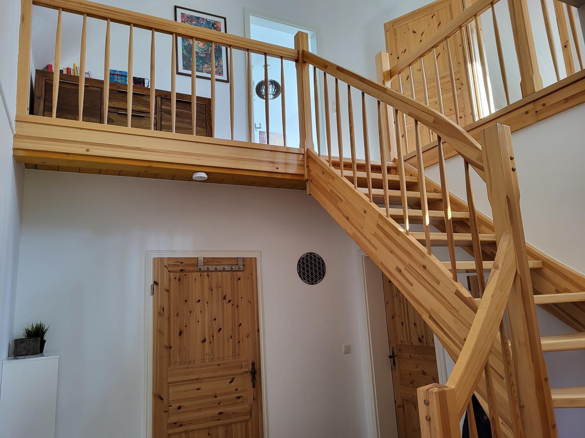 Im Obergeschoss befinden sich zwei weitere Schlafzimmer, in einem steht eine Schlafcouch für zwei Personen, in dem anderen Schlafzimmer befindet sich ein Doppelbett.