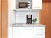 Passend zum Namen Möwe präsentiert sich die Wohnung mit frischen weißen und blauen Farbelementen. Der kombinierte Wohn- und Schlafraum mit gemütlicher Sitzecke und Doppelbett (2x 80x200 cm) lädt zum Verweilen ein. Daneben gibt es ein weiteres Schlafzimmer mit zwei 2 Einzelbetten (je 90x190 cm). Die kleine Pantry-Küche macht Sie flexibel. Das Duschbad ist funktional ausgestattet und hat ein Fenster.