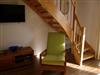 ist sehr geschmackvoll eingerichtet und verfügt zusätzlich über eine Leseecke. Im Außenbereich finden Sie Ihren KFZ-Stellplatz und eine Terrasse zum verweilen. Im gesamten Bereich ist W-lan vorhanden. Das Elternschlafzimmer oben ist mit dem 2. Schlafzimmer durch eine Tür getrennt. Nach unten zum Wohnzimmer ist der Bereich durch eine offene Treppe getrennt. Die Wohnung lässt sich