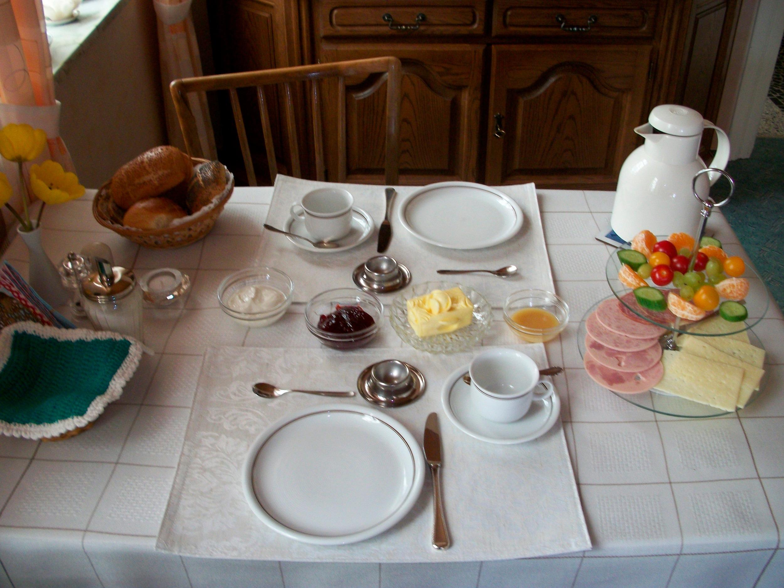 Ein reichaltiges Frühstück wird im gemütlicher Aufenthaltsraum angeboten.