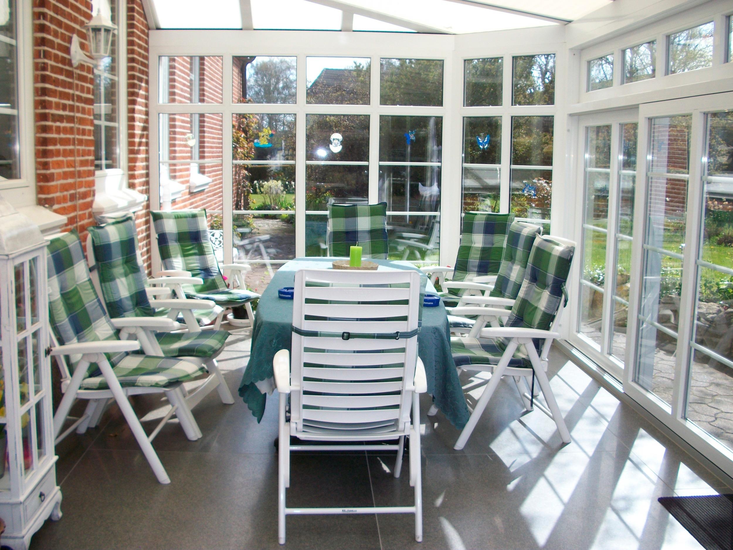 Eine Gästeküche, ein großer neuer Wintergarten und Grillmöglichkeiten stehen allen Gästen zur Verfügung.