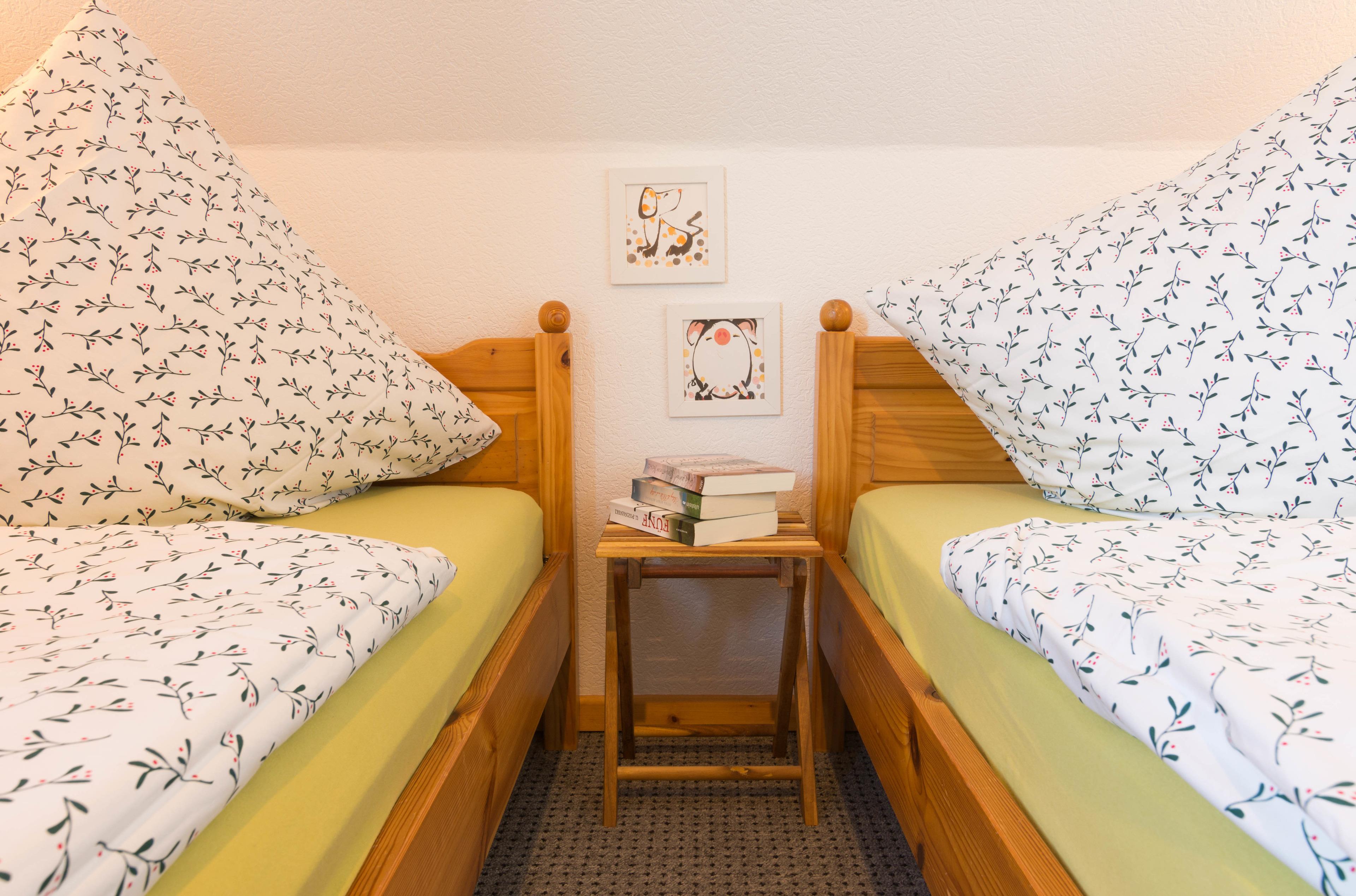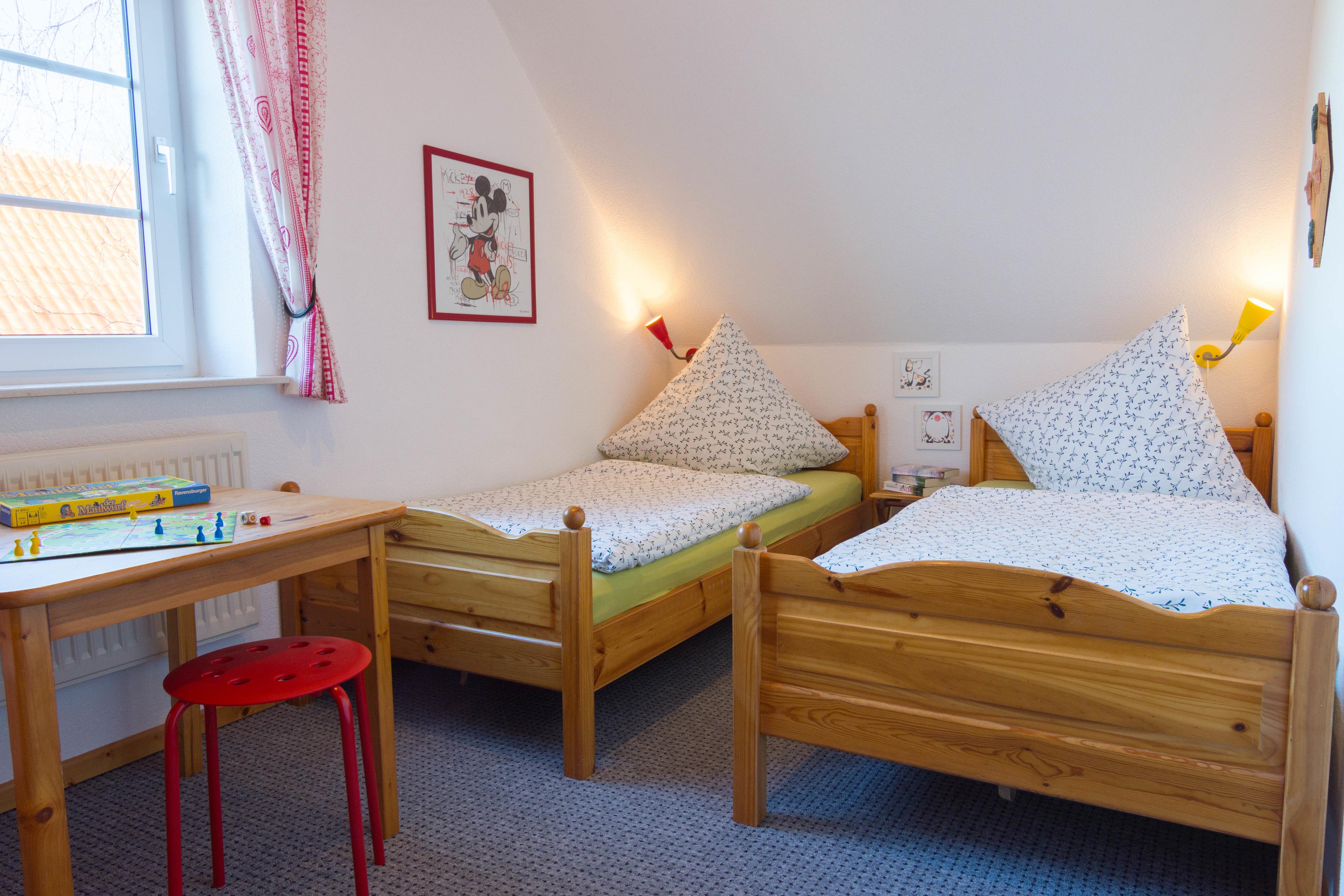 einem Kinderzimmer mit 2 Einzelbetten,