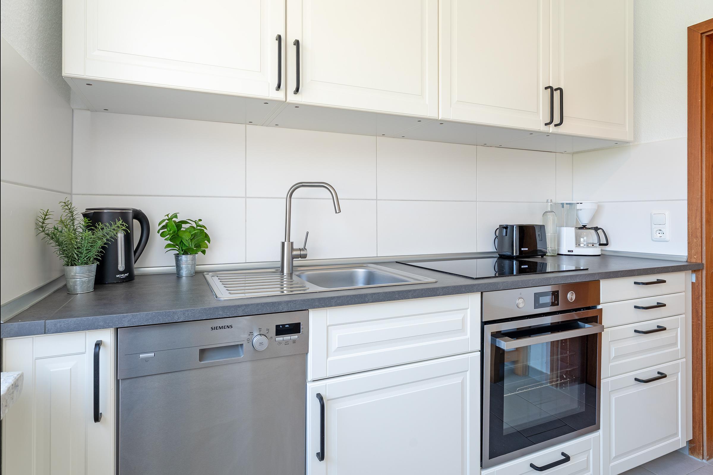 Das gemütliche Wohnzimmer ist in zwei Bereiche aufgeteilt: In dem einen befinden sich eine großen Couch und ein TV, in dem anderen steht ein Schlafsofa. Von hier aus haben Sie Zutritt auf die geräumige, möblierte Süd-Terrasse auf einem Holzdeck. Verbringen Sie hier die schönste Zeit des Jahres in der Sonne oder lassen Sie die Abende bei einem guten Getränk ausklingen. Die Küche ist gut ausgestattet mit Spülmaschine, die Essecke hat ausreichend Platz für ein Frühstück in gemütlicher Runde. Das separate Schlafzimmer ist mit einem bequemen Doppelbett möbliert. Das tageslichthelle Badezimmer ist mit einer Badewanne mit Duschfunktion ausgestattet.