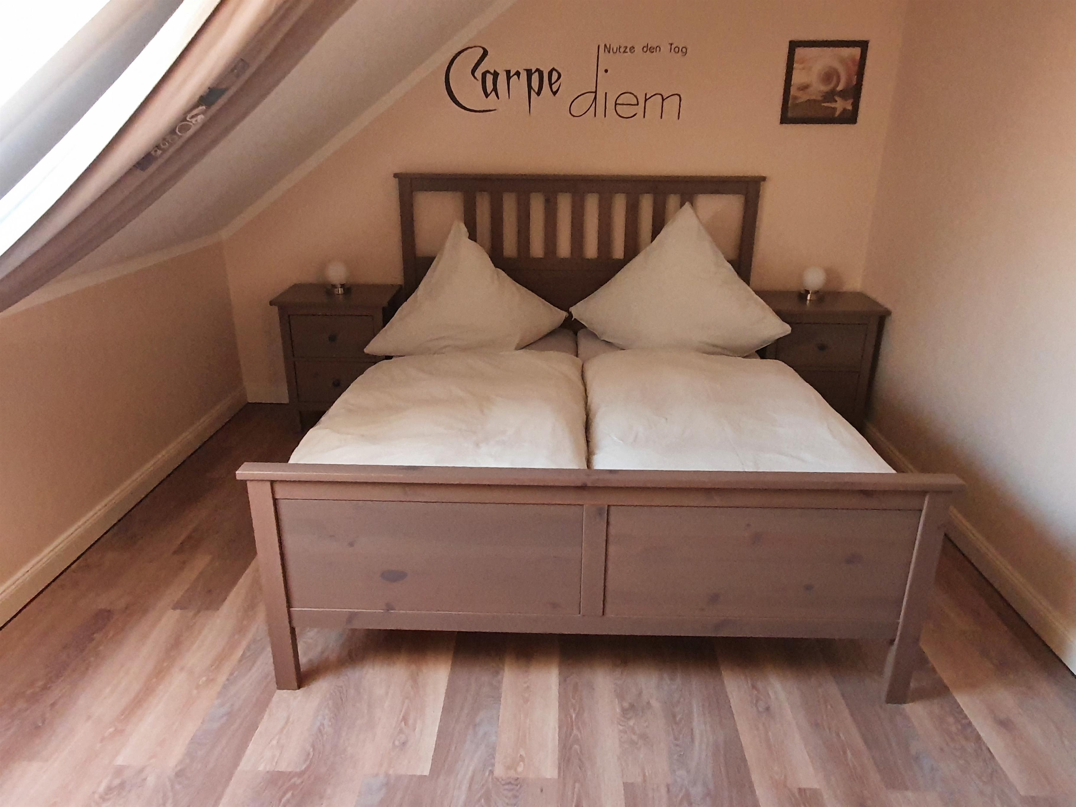 Das Schlafzimmer ist ausgestattet mit einem 160X200cm großem Doppelbett.
