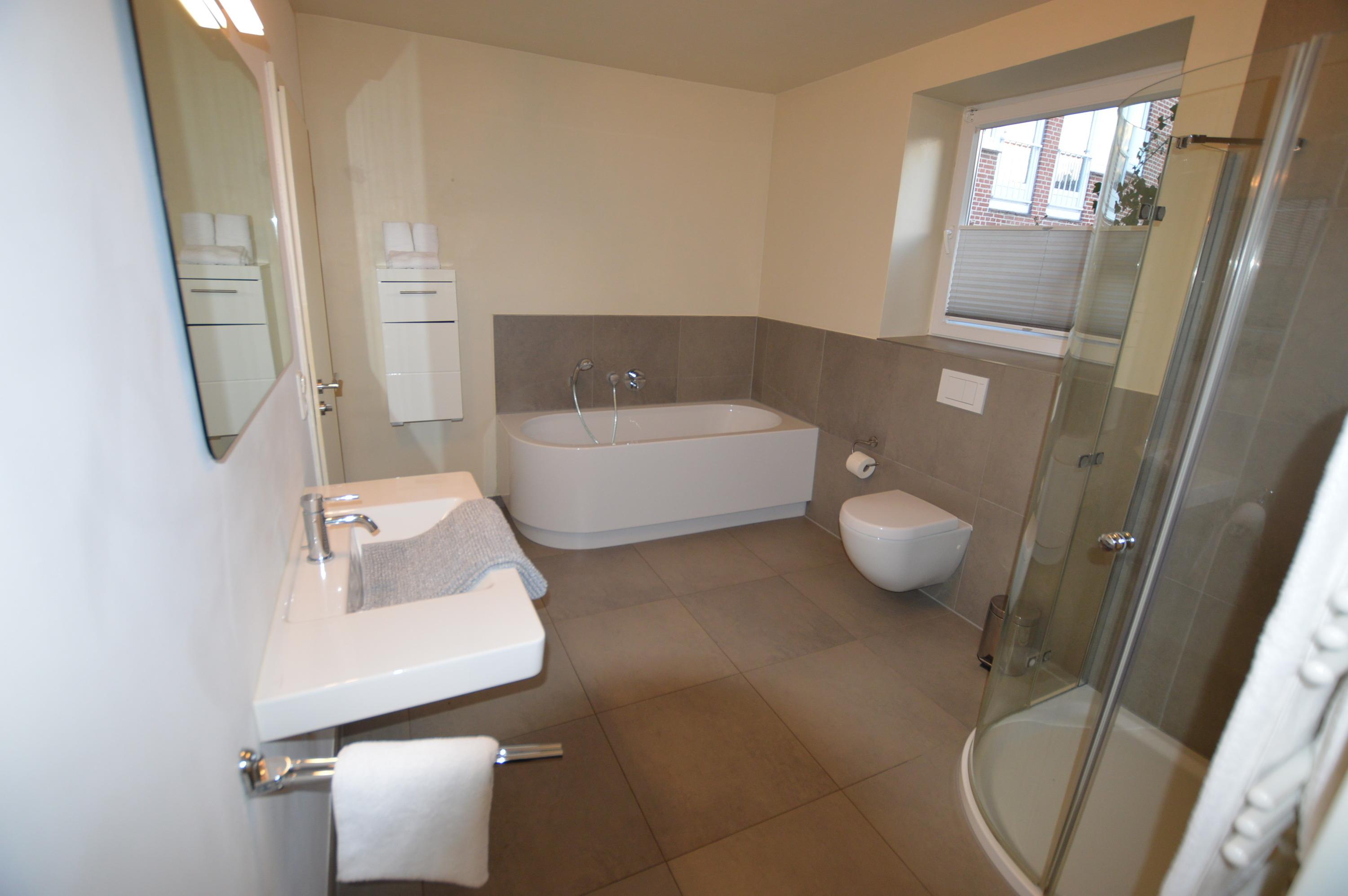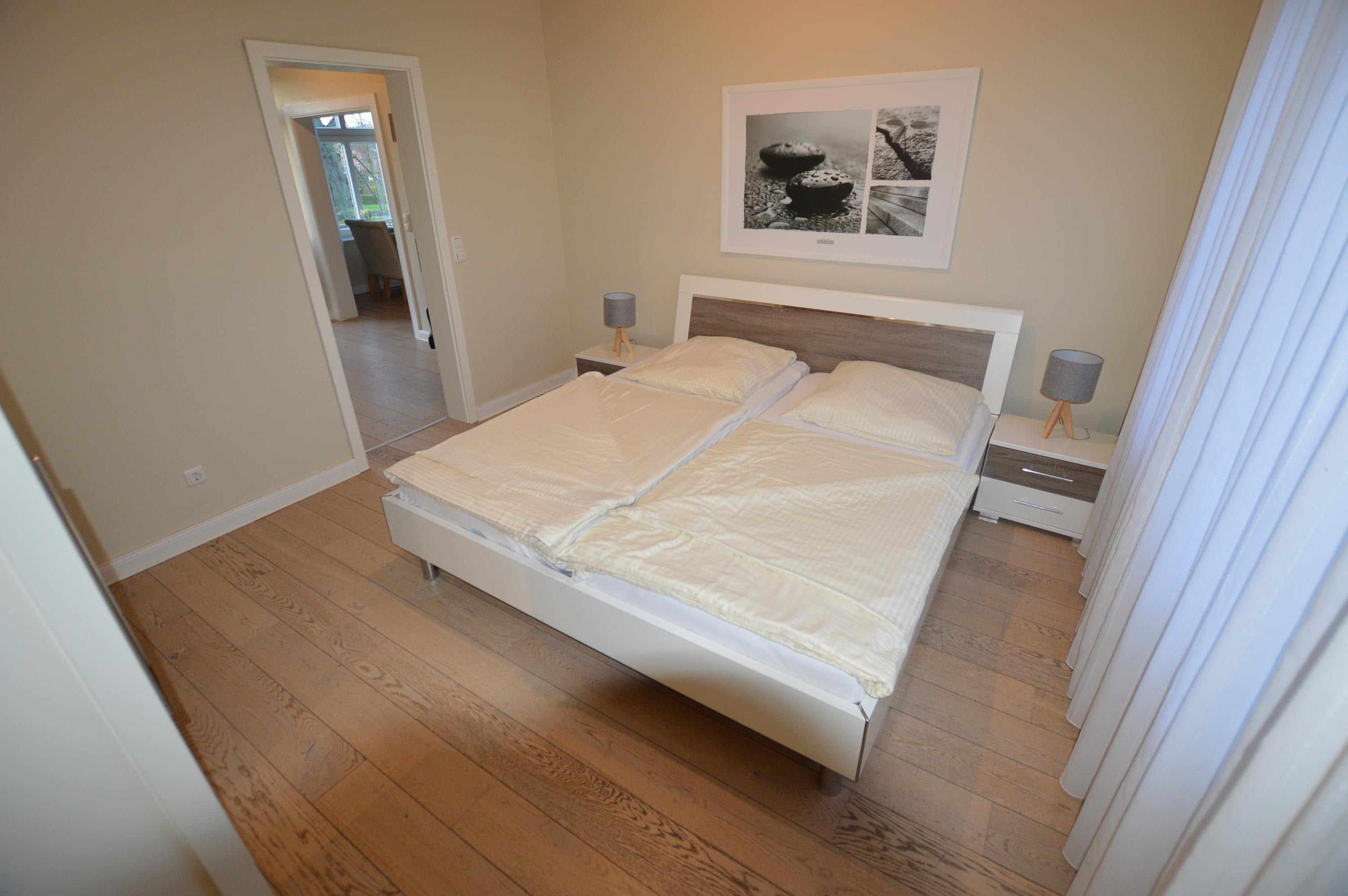 Ihre großzügige, moderne Wohnung im Bauernhaus befindet sich rechts neben der Rezeption und ist die neueste der drei Wohnungen im Bauernhaus. Sie betreten die Wohnung über einen hellen Flur. Von hier aus gelangen Sie über die freundlichen Schlafräume in das moderne Vollbad mit Badewanne, Dusche und Fenster. Die Schafräume verfügen über jeweils ein Doppelbett. Sollten Sie ein drittes Kind welches nicht mehr in eine Babybett passt mitbringen, sagen Sie bitte Bescheid, dann stellen wir ein Zustellbett mit in eines der Schlafzimmer.