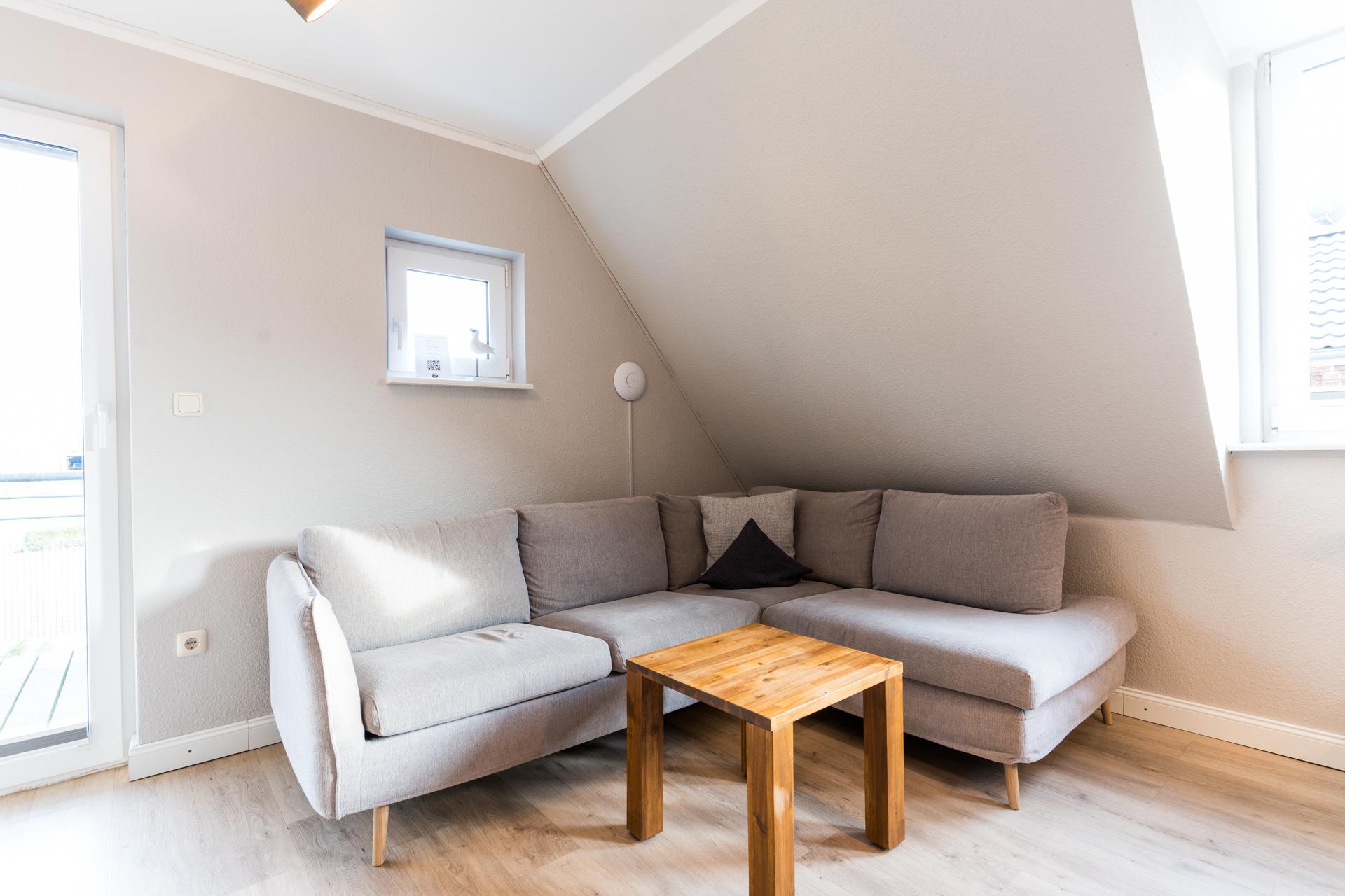Im lichtdurchfluteten Wohn-Ess-Zimmer erwarten Sie ein Flachbild-TV mit DVD-Player, ein Radio und ein CD-Player.