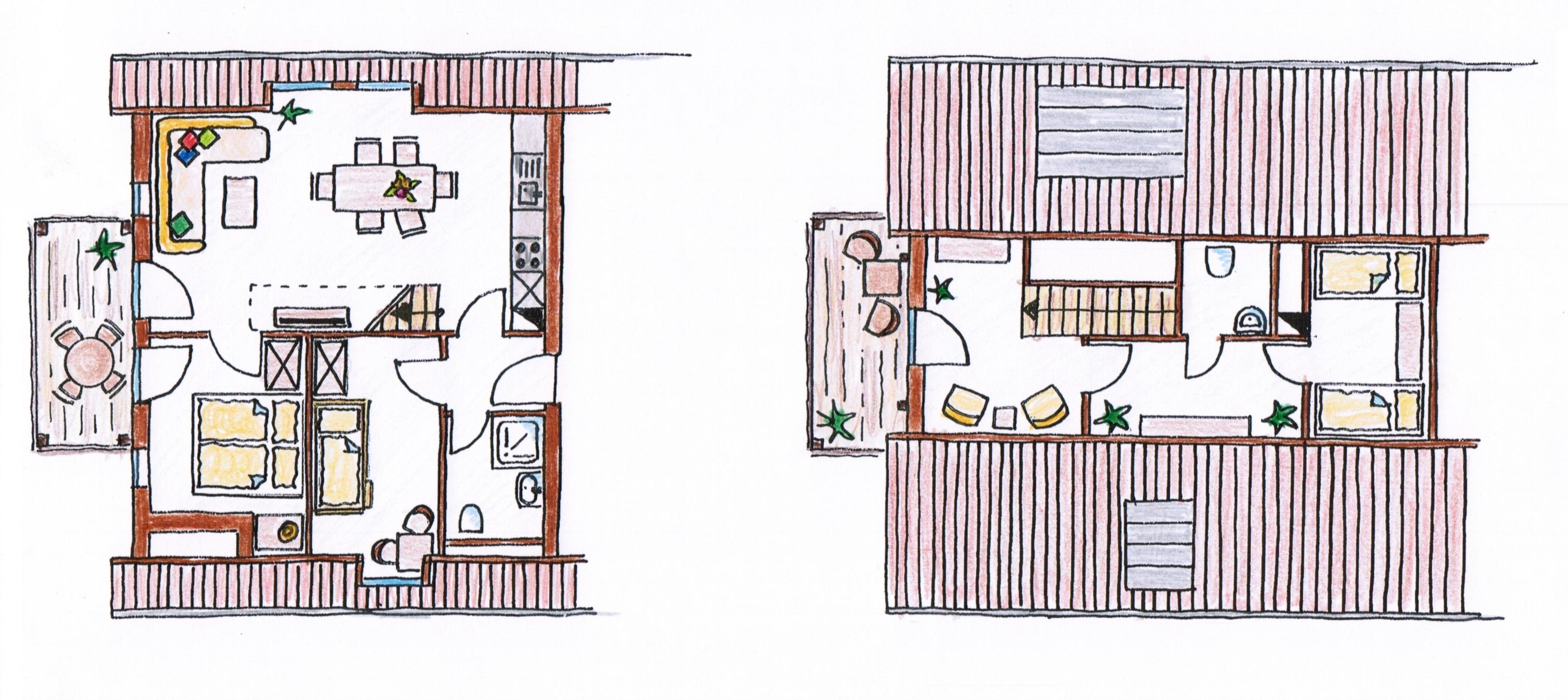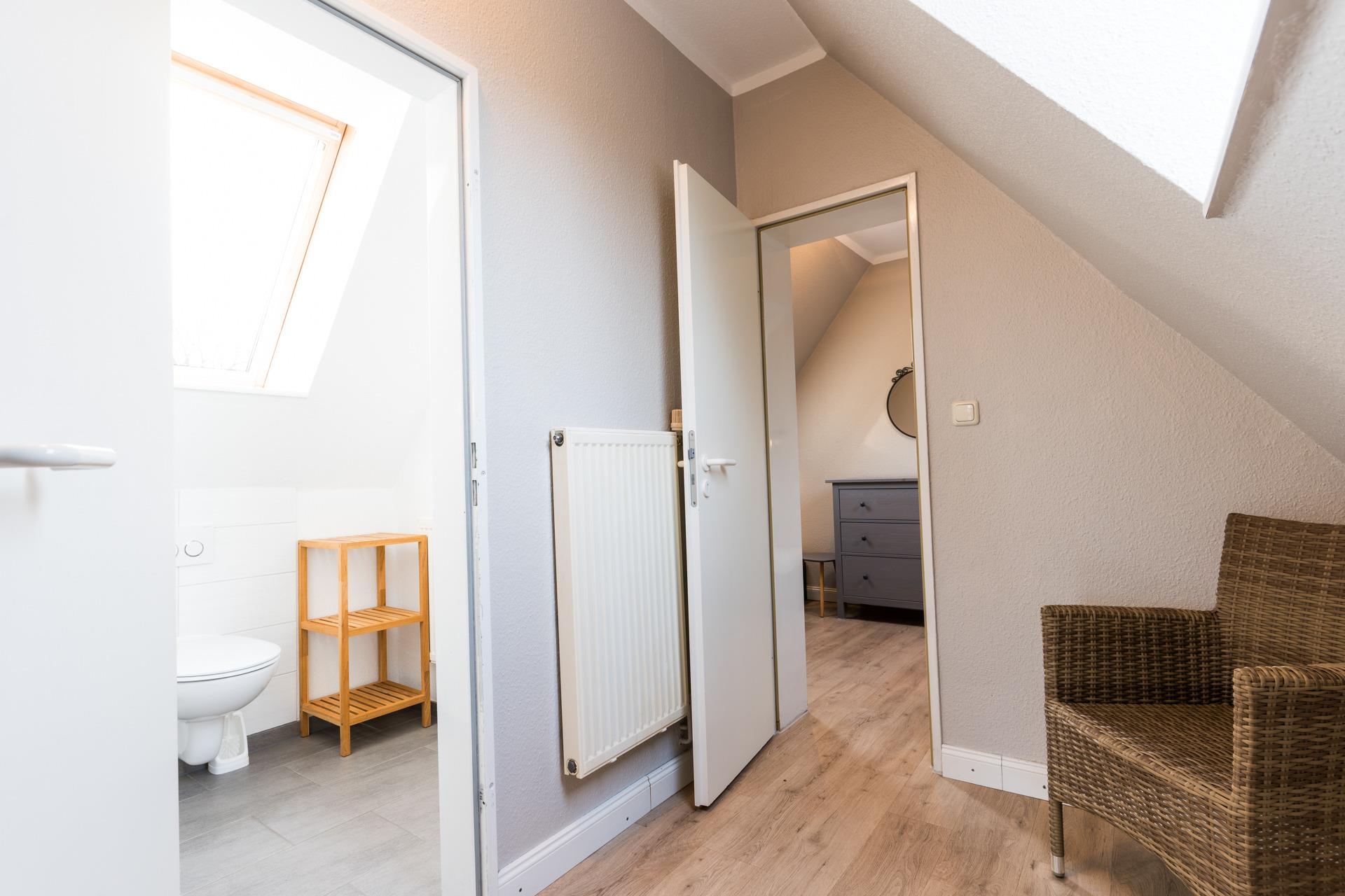 Ein Schlafzimmer ist mit 1 Doppelbett ausgestattet und 1 Schlafzimmer mit 1 Etagenbett. Das dritte Schlafzimmer befindet sich im Spitzboden und ist ausgestattet mit 2 Einzelbetten.