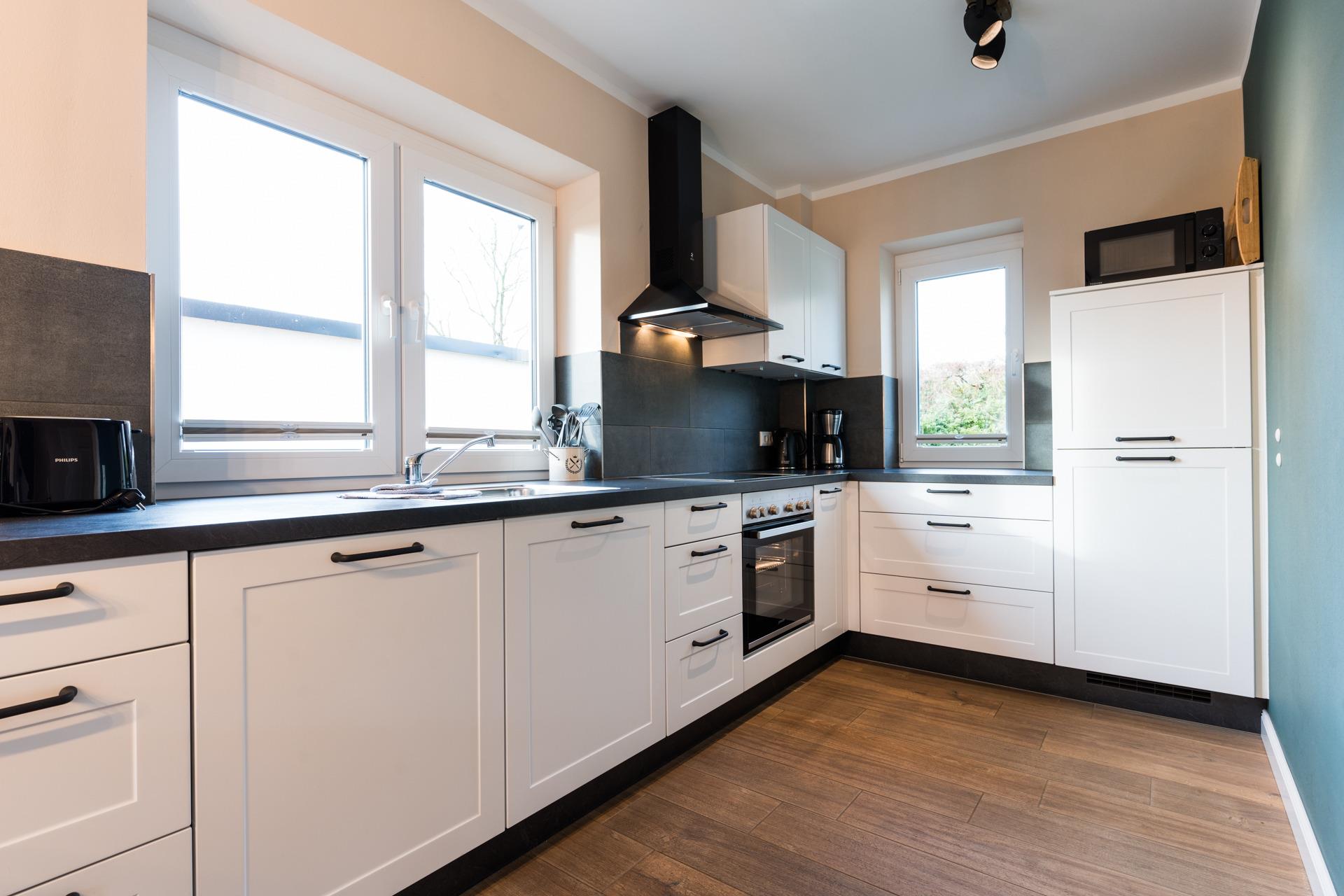 Die hochwertige Küche ist komplett ausgestattet mit allen Geräten und Utensilien, die Sie benötigen.