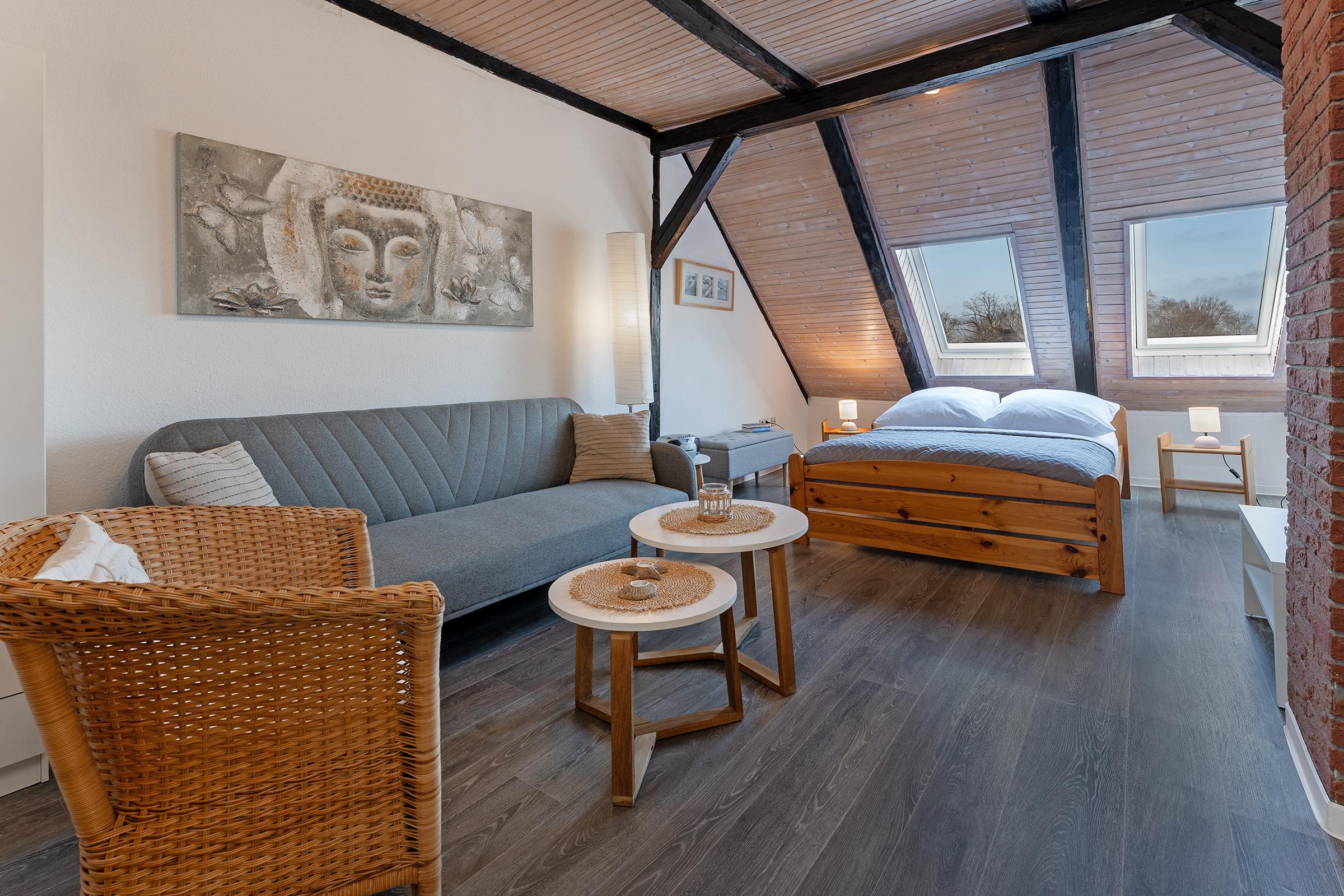 Diese gemütliche 2-Zimmer-Ferienwohnung im 1. Stock befindet sich auf einem ehemaligen Bauernhof im schönen Staberdorf im Süden der Insel Fehmarn. Auf ca. 35 m² ist genügend Platz für max. 3 Personen.