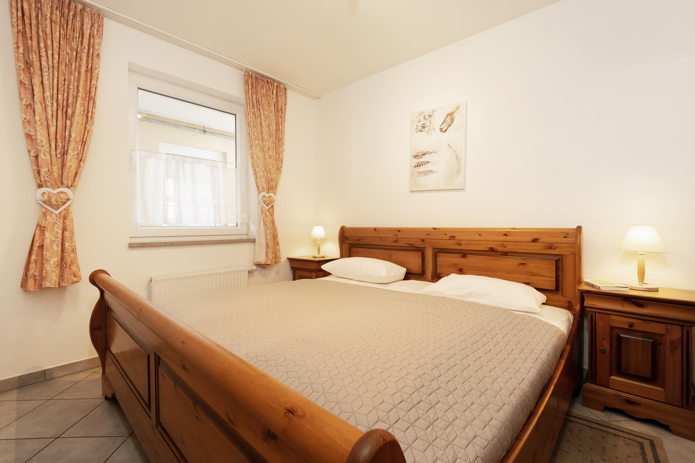 Strandnah im idyllischen Staberdorf: ruhige 2-Zimmer-Ferienwohnung mit ca. 43 m² Wohnfläche im 1. Stock mit Balkon für bis zu 2 Erwachsene und 1 Kind mit direktem Meerblick.