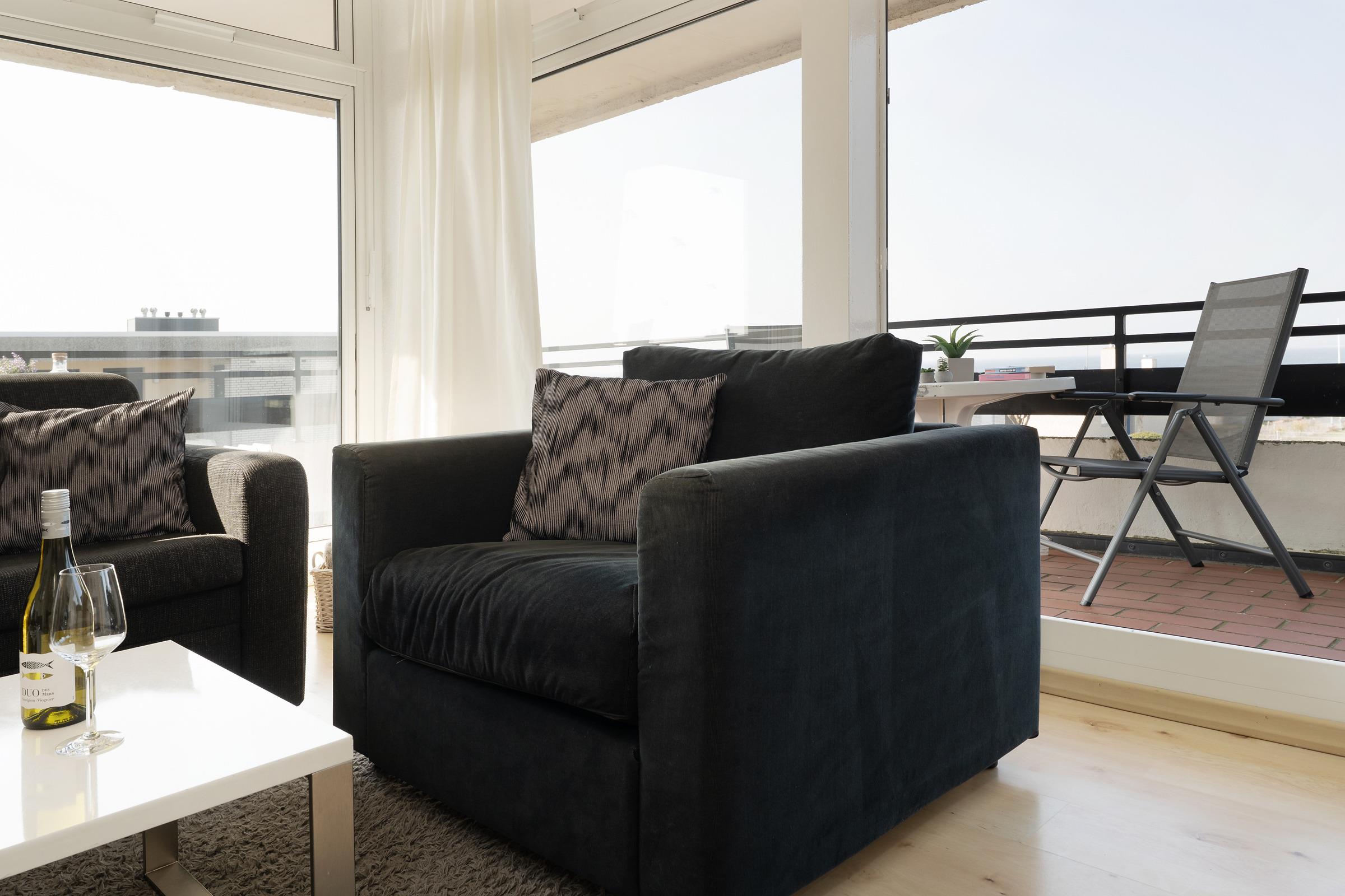 Der perfekte Standort der Wohnung, nur 100 Meter vom Strand entfernt, ermöglicht es Ihnen, das Meeresrauschen jederzeit zu genießen. Die Wohnung selbst überzeugt durch ihre moderne und lichtdurchflutete Gestaltung. Der schöne Wohnbereich ist mit einem komfortablen Sofa ausgestattet und lädt zum Verweilen mit einem guten Buch oder einem Filmabend am Fernseher ein. Der angrenzende Küchenbereich ist ideal, um gemeinsam zu kochen und zu essen. Genießen Sie den Panoramablick aufs Meer aus einem der großen Fenster oder vom überdachtem Balkon aus. Die Wohnung verfügt über zwei Schlafzimmer, eins mit einem Doppelbett und eins mit einem Etagenbett. Das gepflegte Duschbad ist hell gefliest. Auf geht es in den nächsten Urlaubstag: Der nahegelegene Naturstrand lädt zum Baden ein, aber auch Wassersportliebhabern bietet er viele Möglichkeiten. Auf dem fußläufig erreichbaren Campingplatz finden Sie ein Supermarkt sowie Restaurants und Spielmöglichkeiten für Kinder.