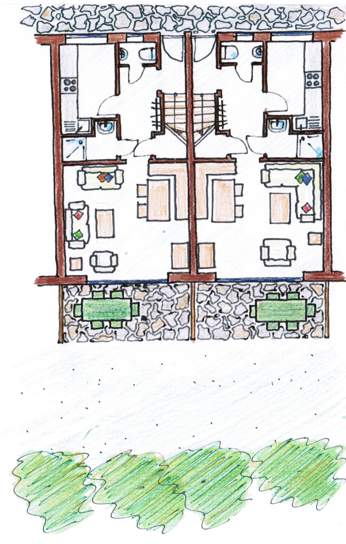 Ein Duschbad und ein separates WC befinden sich im Erdgeschoss. In der 1. Etage befindet sich das 2. Duschbad mit WC.