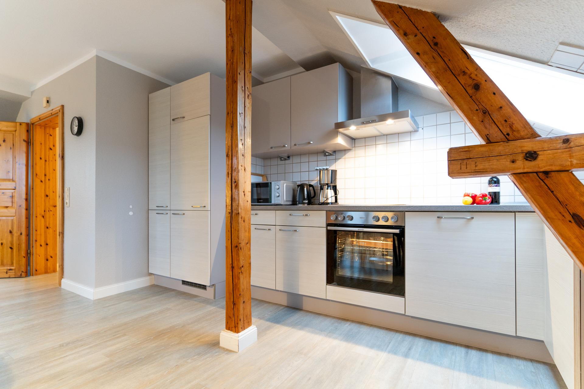 Die offene Küche ist komplett ausgestattet mit allen Geräten und Utensilien, die Sie benötigen.