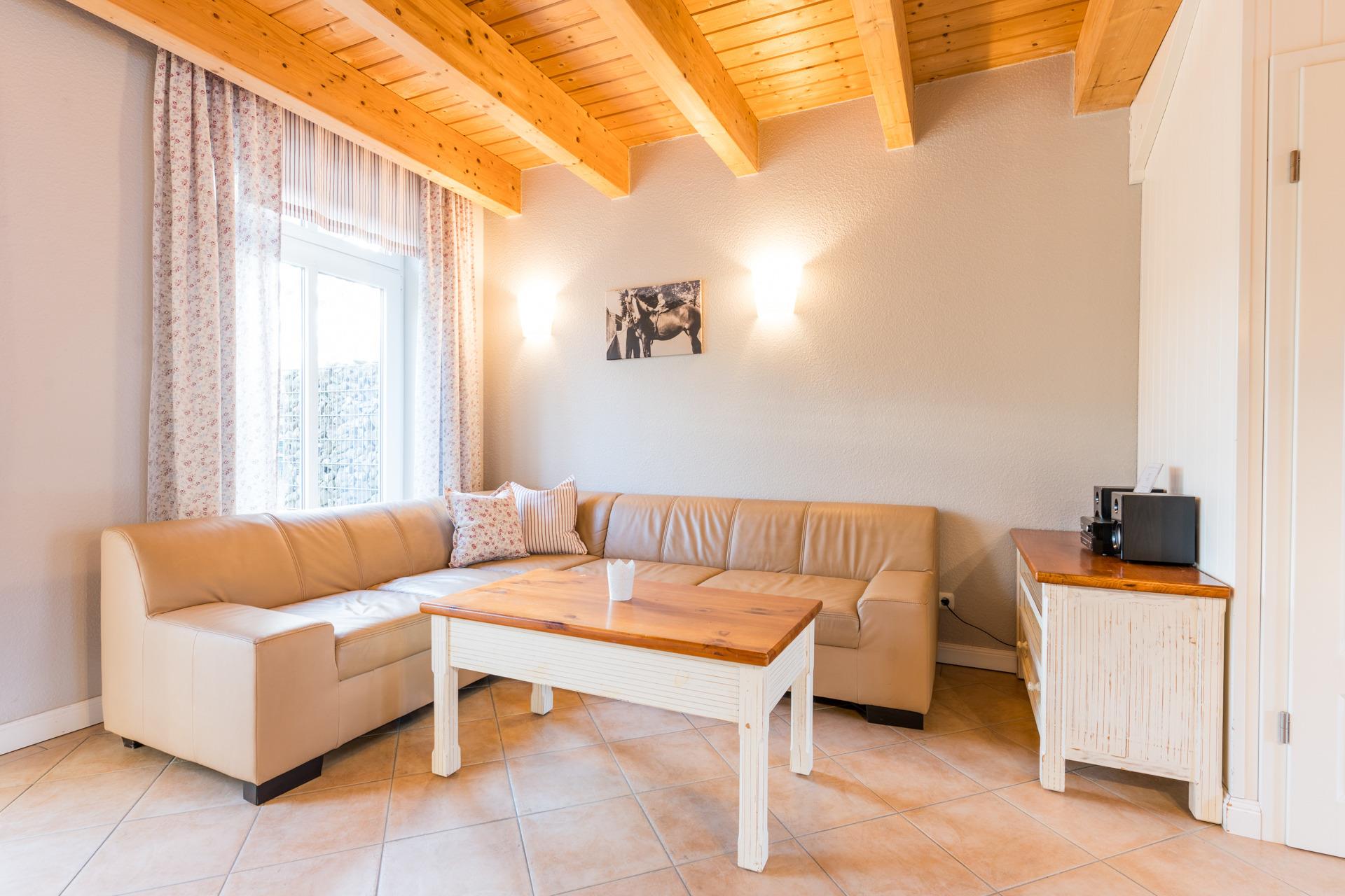 Die Einrichtung im gemütlichen Landhaussti lkombiniert mit moderner und komfortabler Ausstattung gibt Ihnen das Gefühl, im Urlaub ein Zuhause zu haben.