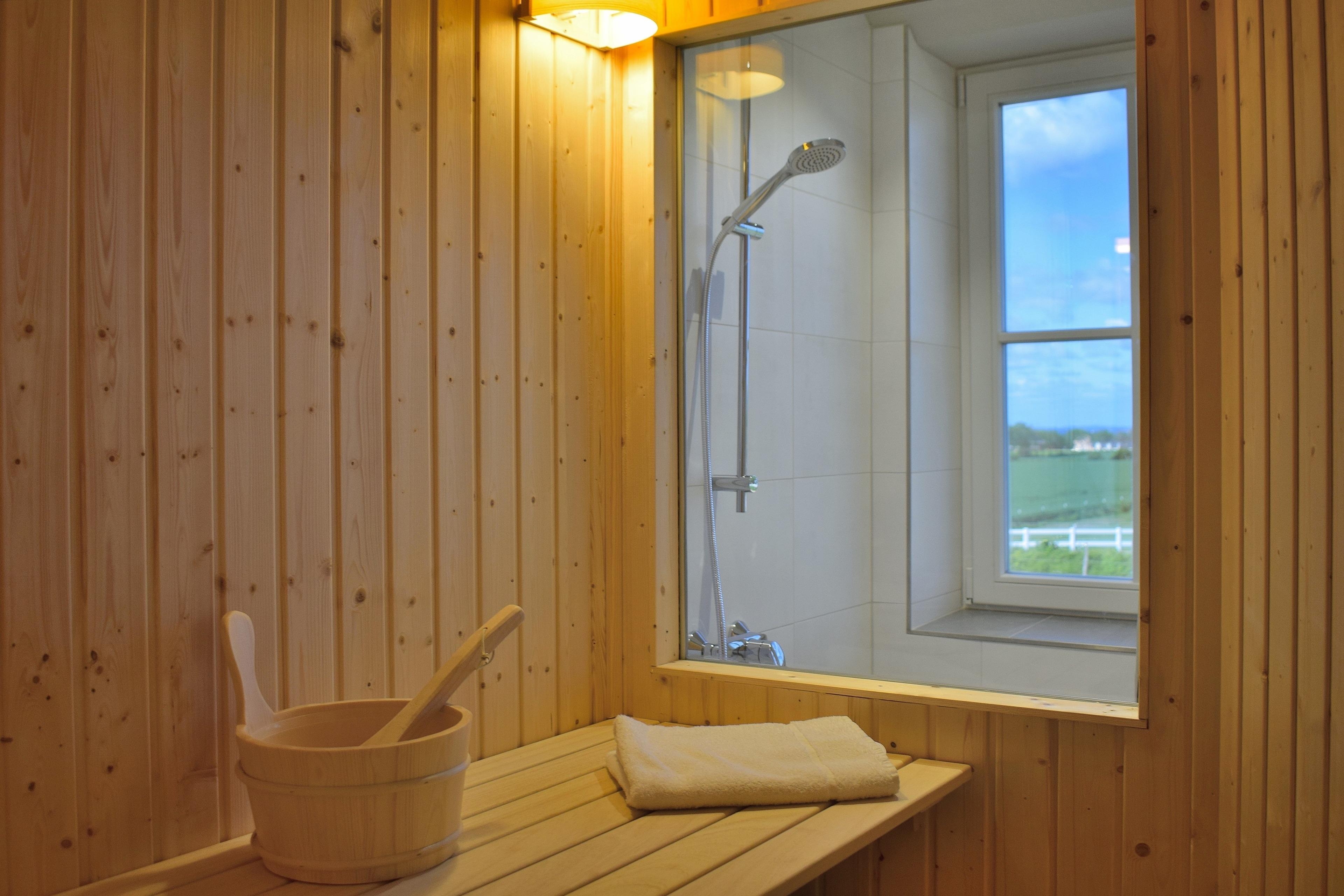 Im geräumigen Badezimmer befindet sich eine Sauna und eine Dusche mit Meeerblick!