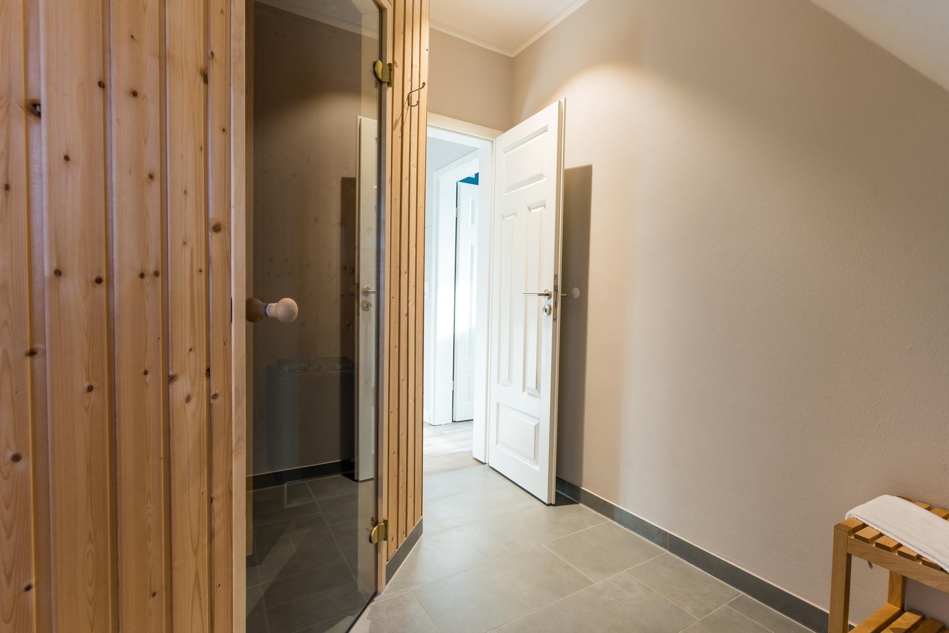 Desweiteren gibt es ein Badezimmer mit Dusche und einen Wellness-Raum mit Sauna und Meerblick!