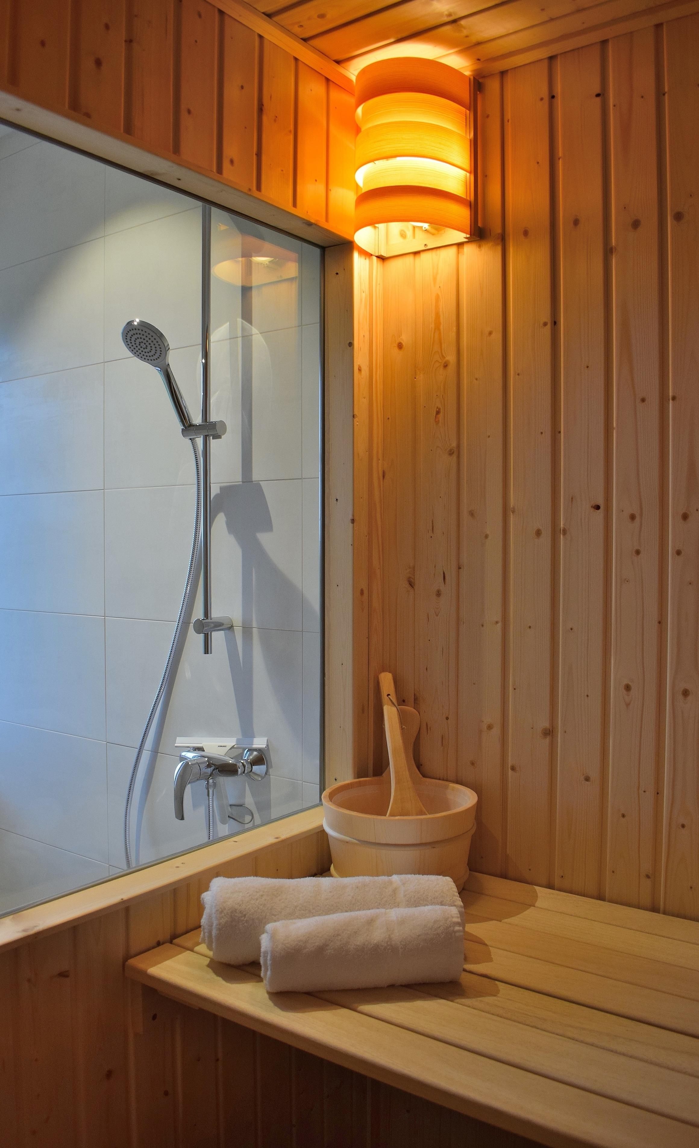 Desweiteren gibt es ein Badezimmer mit Dusche und einen Wellness-Raum mit Sauna und Meerblick!