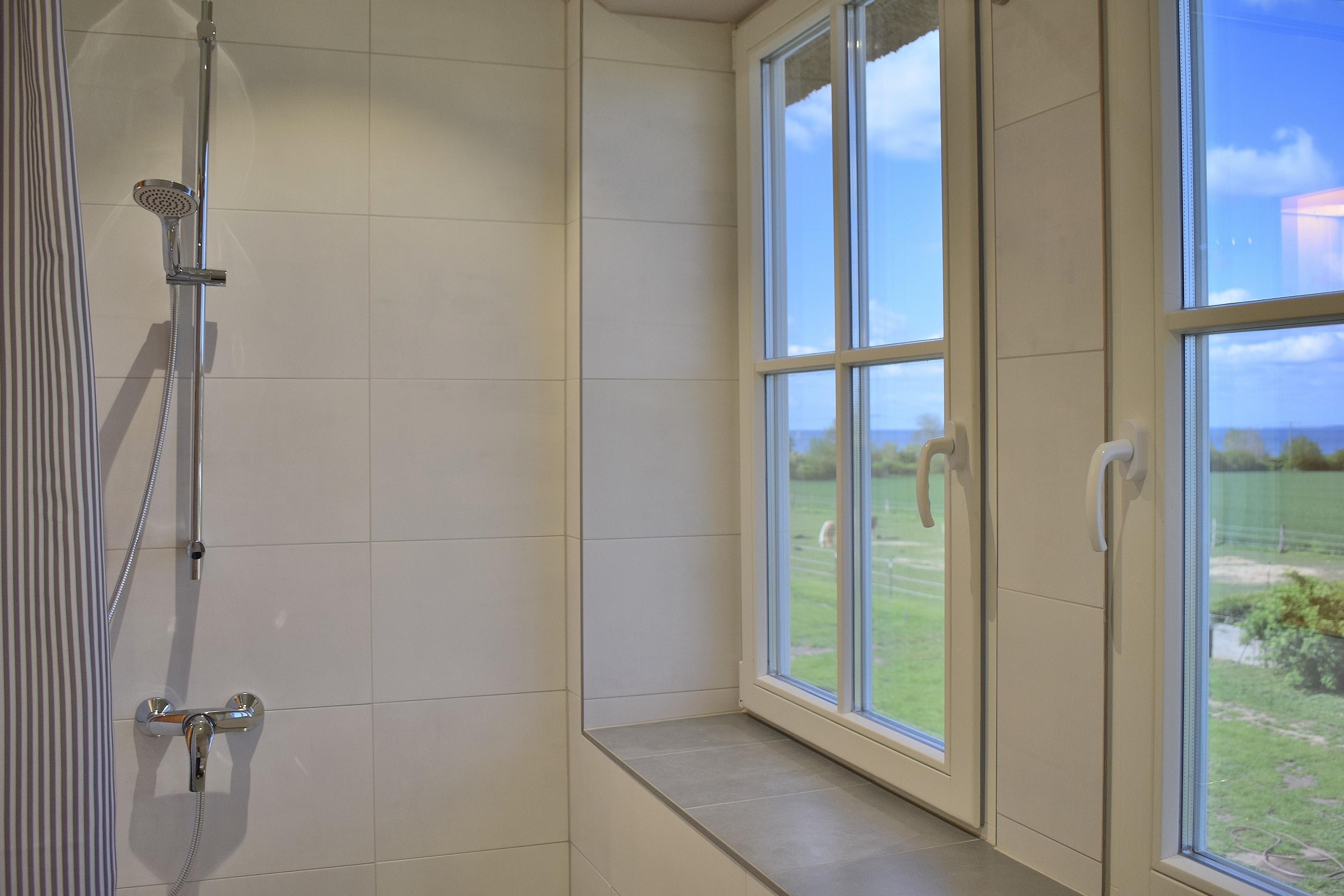Im geräumigen Badezimmer befindet sich eine Sauna und eine Dusche mit Meeerblick!