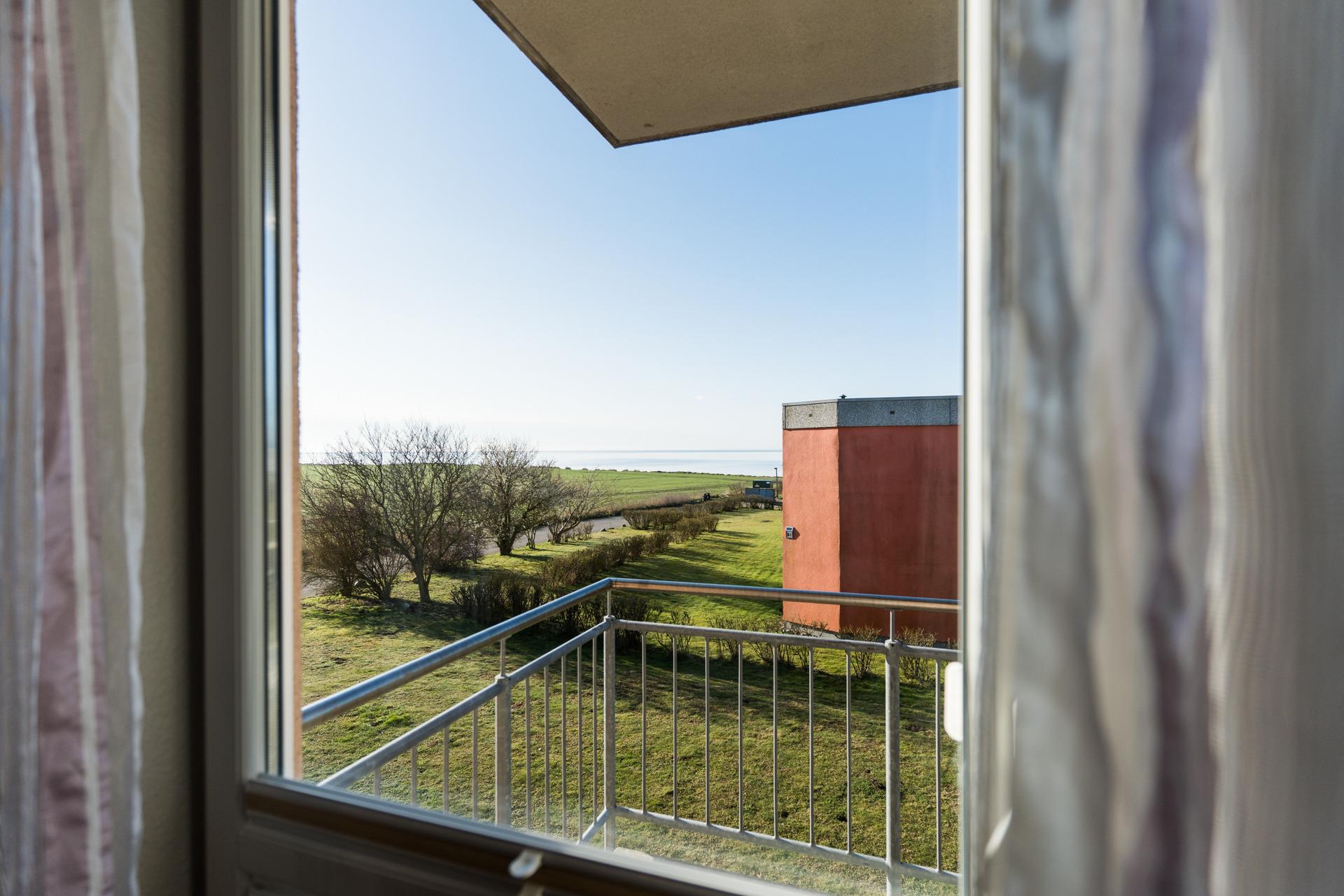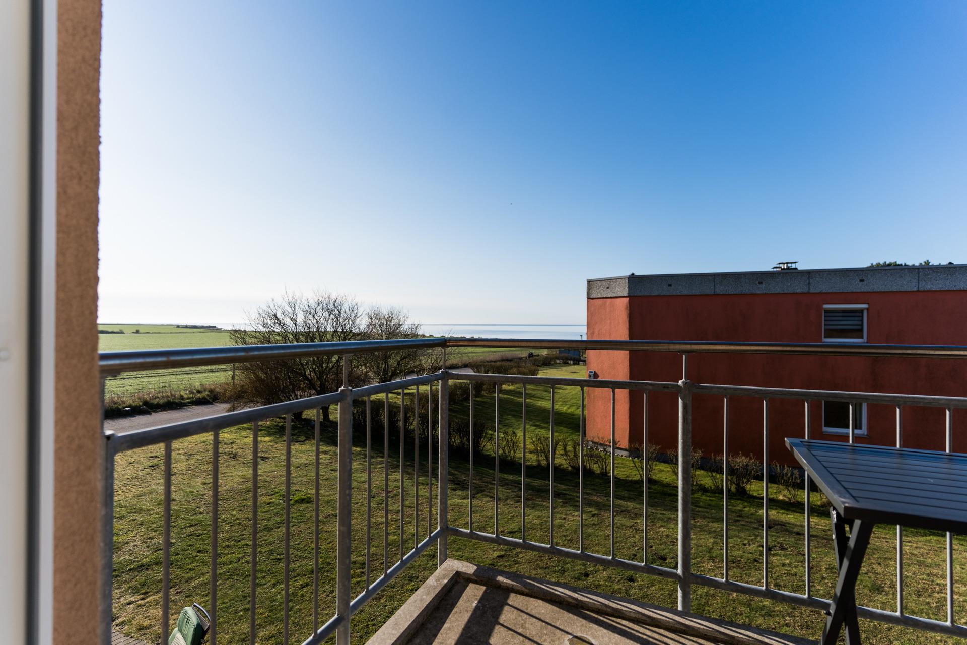 Genießen Sie den Meerblick vom möblierten Balkon aus oder entspannen Sie im Strandkorb direkt an der Düne.