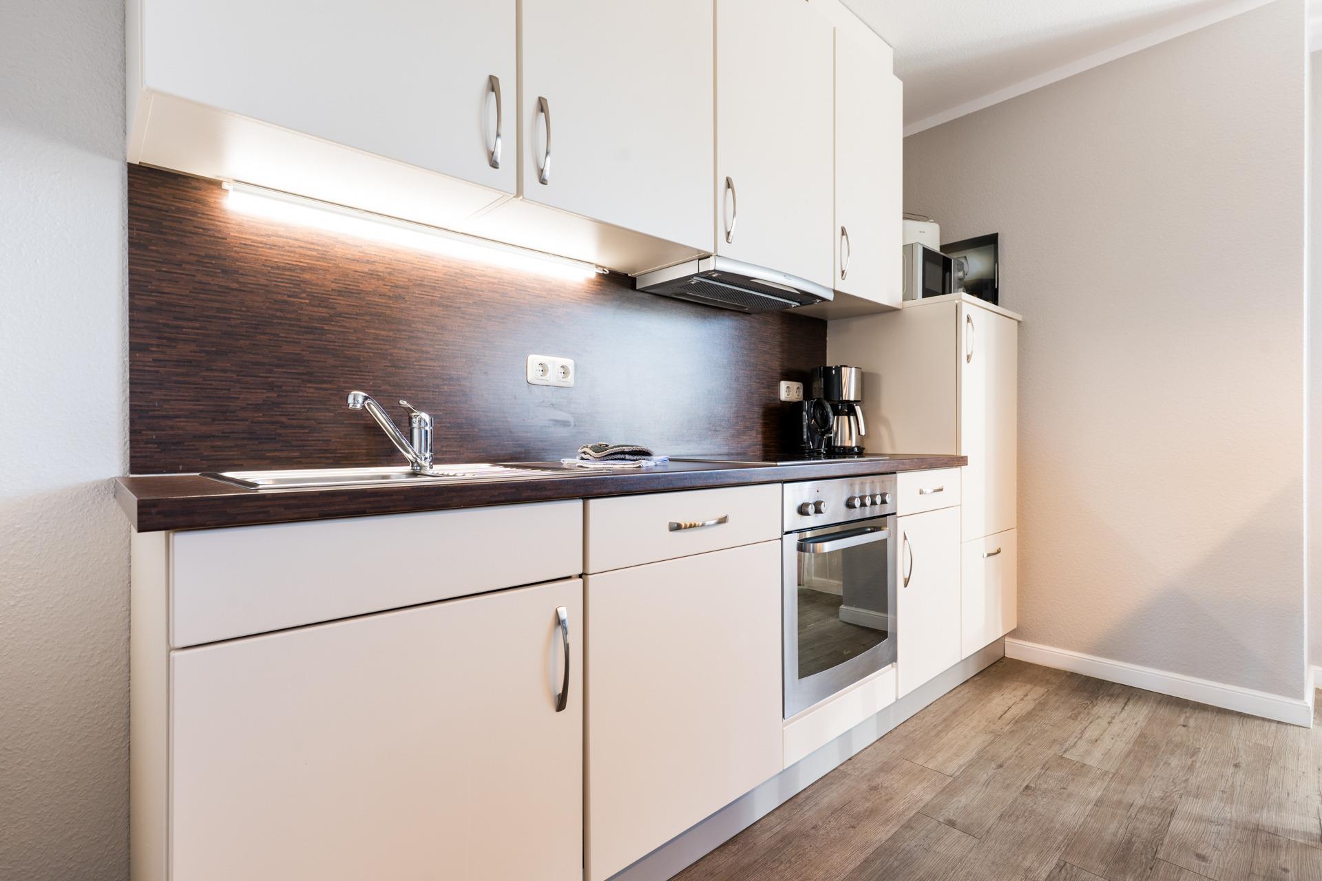 Es fehlt an nichts auf 40m² - ein Schlafzimmer mit Doppelbett, ein vollwertiges Duschbad und eine komplett ausgestattete Küche gehören ebenso zum Appartement wie ein gemütlicher Wohnbereich und ein Balkon.