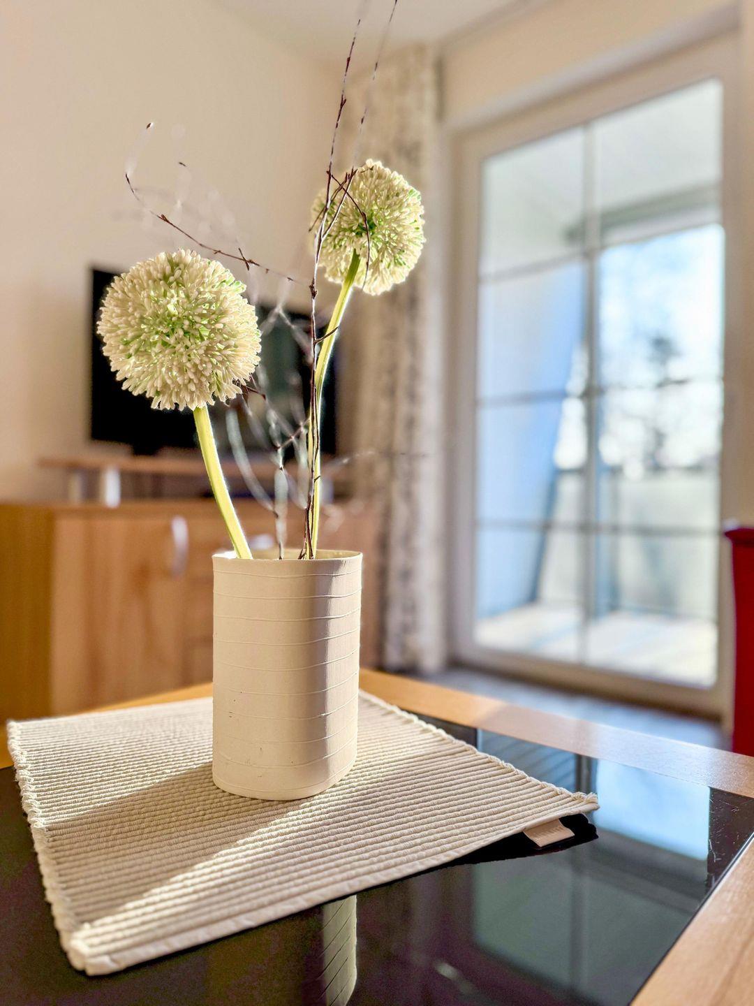 In dieser Wohnung finden Sie eine moderne und gleichzeitig gemütliche Atmosphäre vor. Die Fernsehecke ist mit Sofa, Sesseln und Couch eingerichtet. Der geräumige Küchenbereich ist mit allen notwendigen Küchenutensilien ausgestattet.