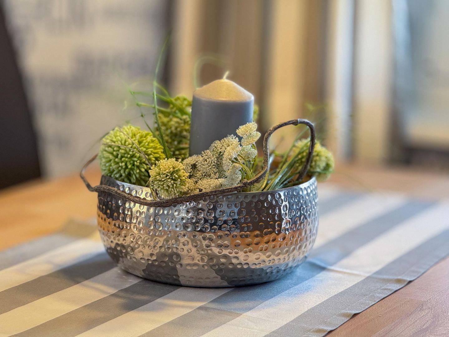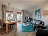 In dieser Wohnung finden Sie eine moderne und gleichzeitig gemütliche Atmosphäre vor. Die Fernsehecke ist mit Sofa, Sesseln und Couch eingerichtet. Der geräumige Küchenbereich ist mit allen notwendigen Küchenutensilien ausgestattet.