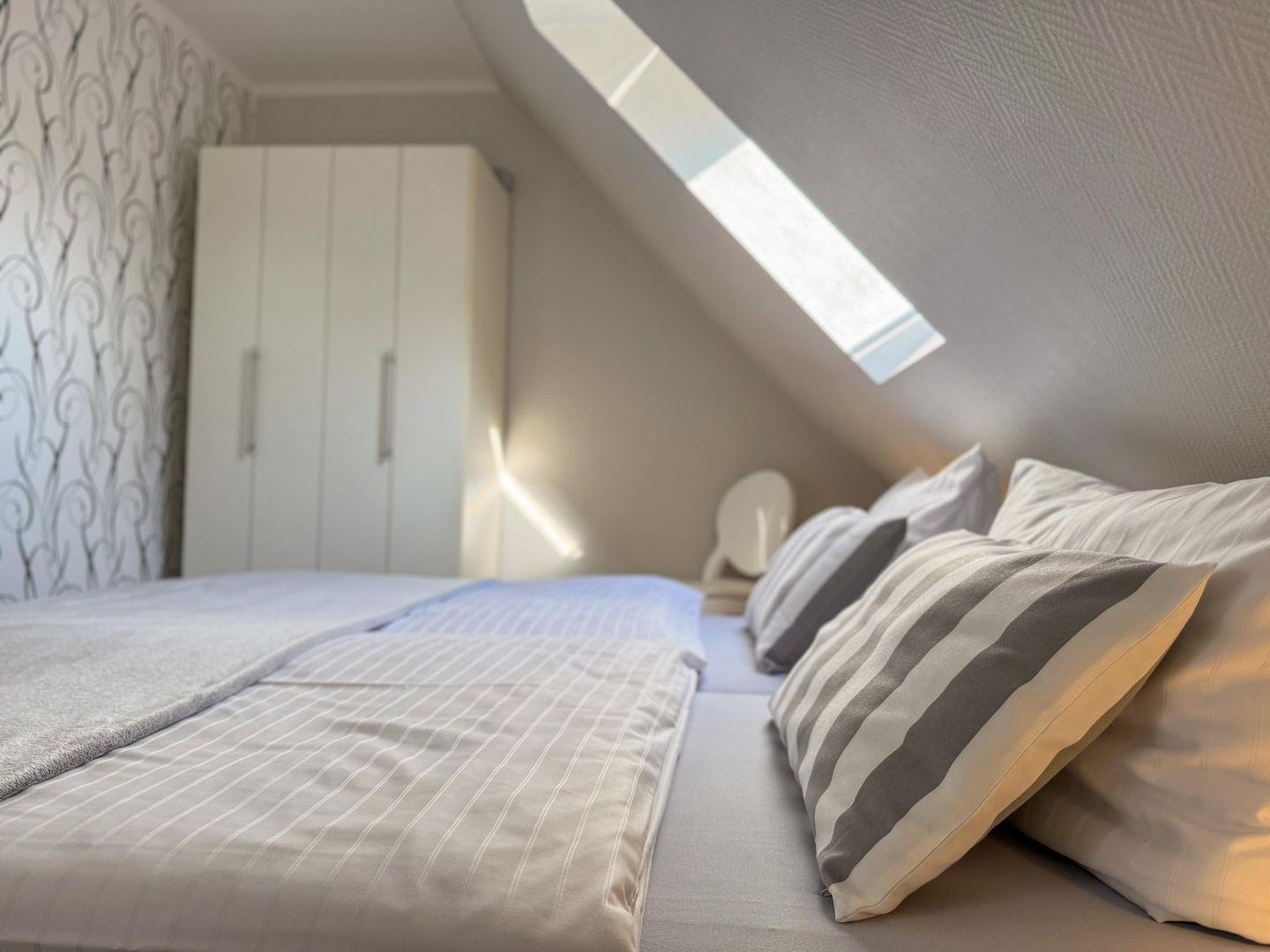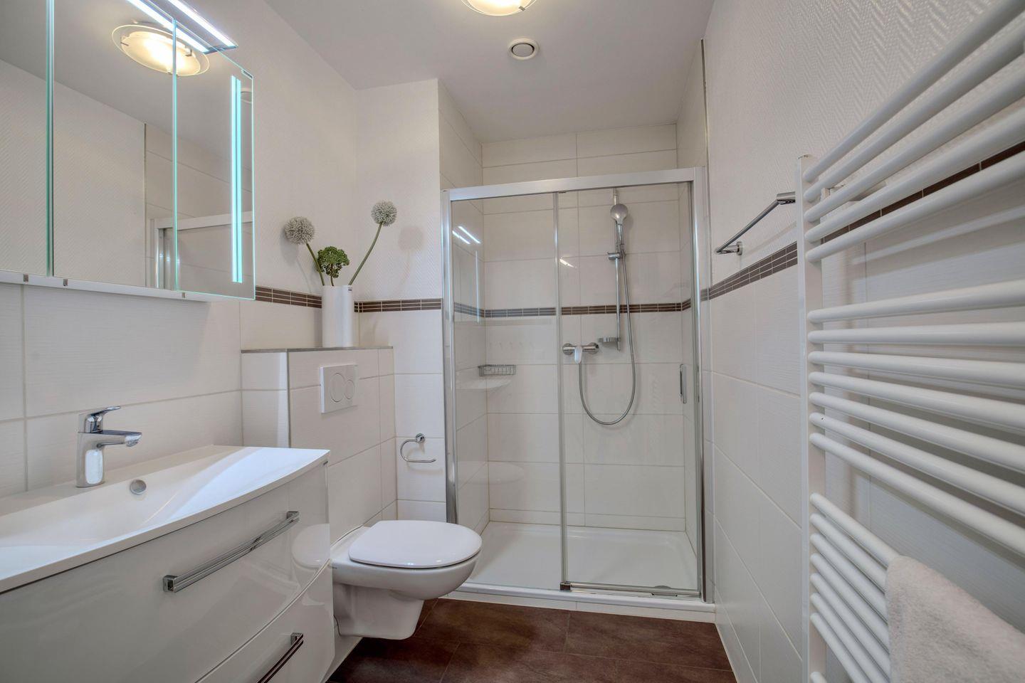 Das Bad mit Fenster ist mit Dusche und WC ausgestattet. Alle Verbrauchskosten und der W-Lan Zugang sind bereits im Mietpreis enthalten. Die Betten werden bezogen und Handtücher werden auch gestellt.