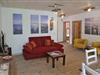 Das große Wohnzimmer hat ein gemütliches Schlafsofa.