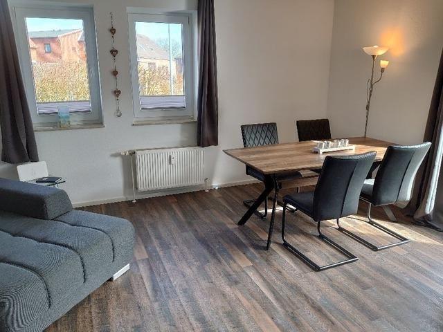 Die Wohnung liegt im Erdgeschoss eines ruhigen kleinen Mehrfamilienhauses, in einer Sackgasse stehend. Durch diese Lage am äußersten Dorfrand ist das Haus ideal geeignet für Urlaub und Erholung mit Kind und Hund.