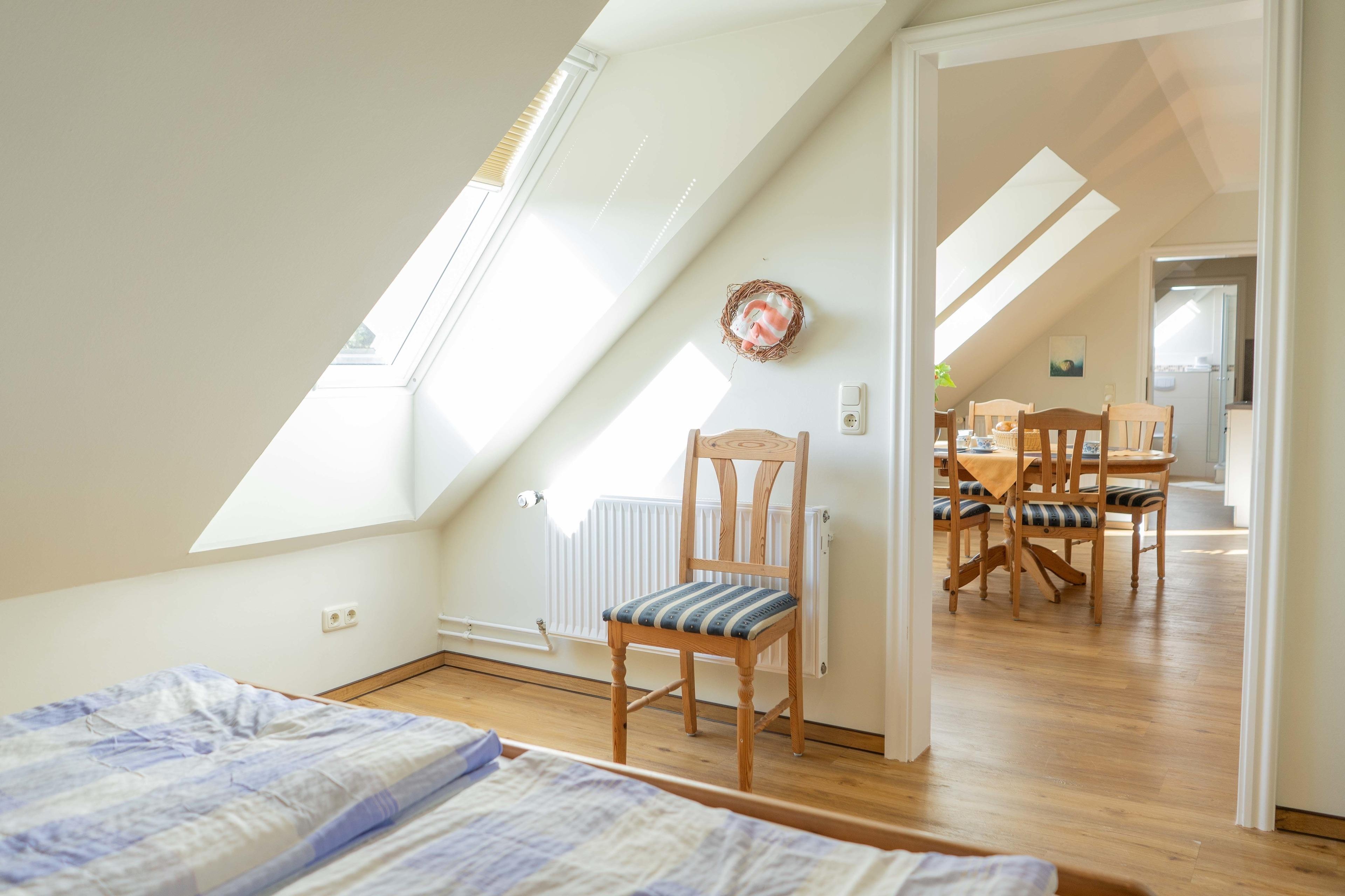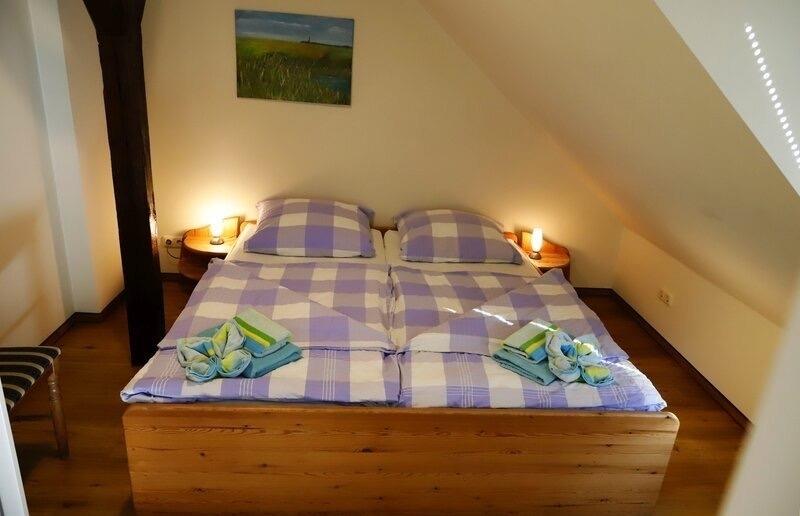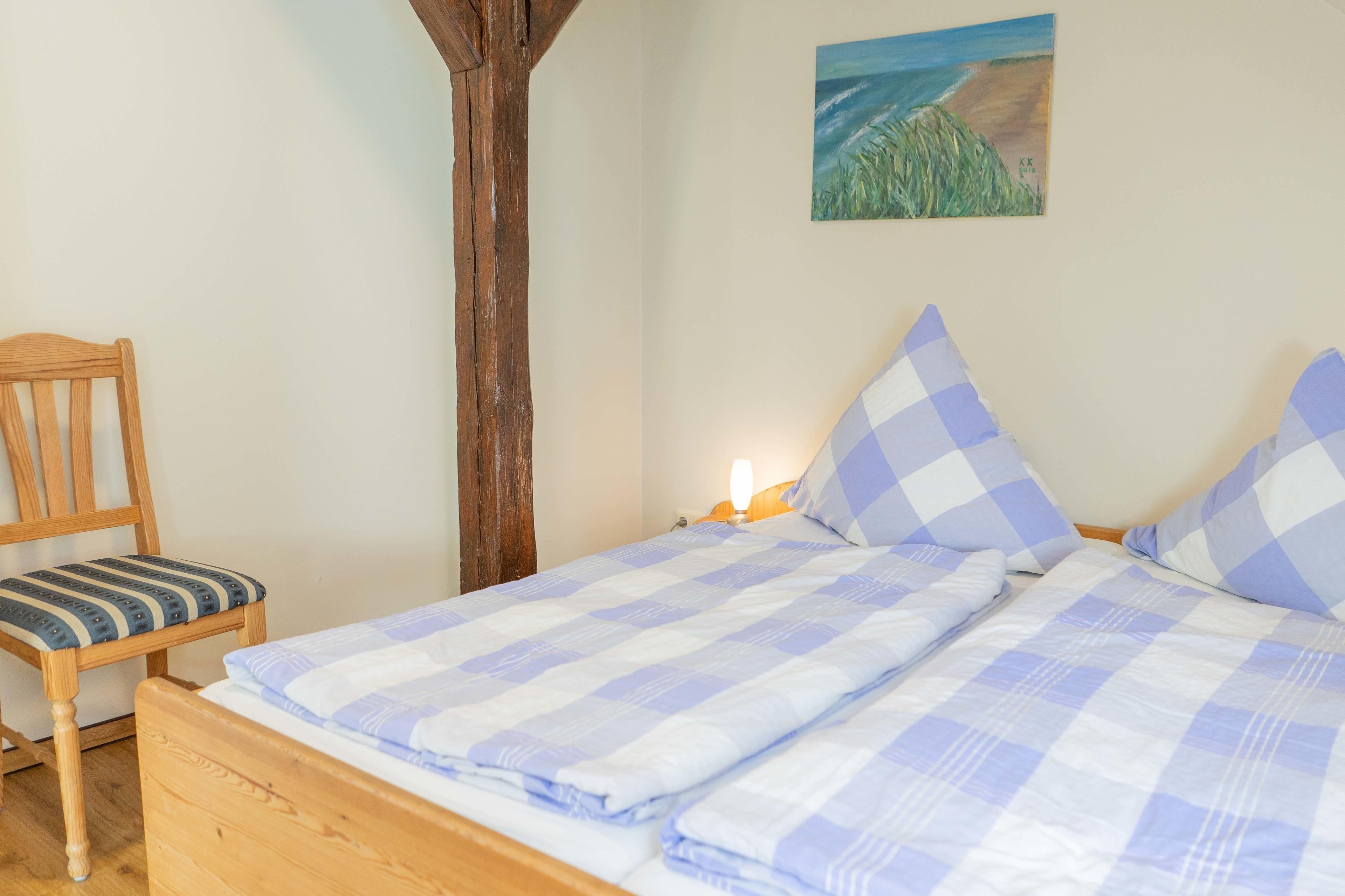 Die Ferienwohnung Bauernhus 13 befindet sich in der ersten Etage des Bauernhauses. Die gut ausgestattete komfortable Wohnung ist im skandinavischen Stil gehalten und bietet einen fantastischen Blick über das Naturschutzgebiet bis zur Ostsee. Die Wohnung ist großzügig geschnitten (ca. 65 qm). Beide Schlafzimmer sind mit einem Doppelbett ausgestattet. Im zweiten Schlafzimmer befindet sich ein weiteres Einzelbett. Die Möglichkeit ein zusätzliches Babybett aufzustellen ist in beiden Schlafräumen gegeben. Kinder sind bei uns gern gesehene Gäste. Für unsere Kleinsten bieten wir kostenfreie Kinderbetten und Hochstühle an. Parkplätze und Unterstellmöglichkeiten für mitgebrachte Sportgeräte sind ausreichend vorhanden.