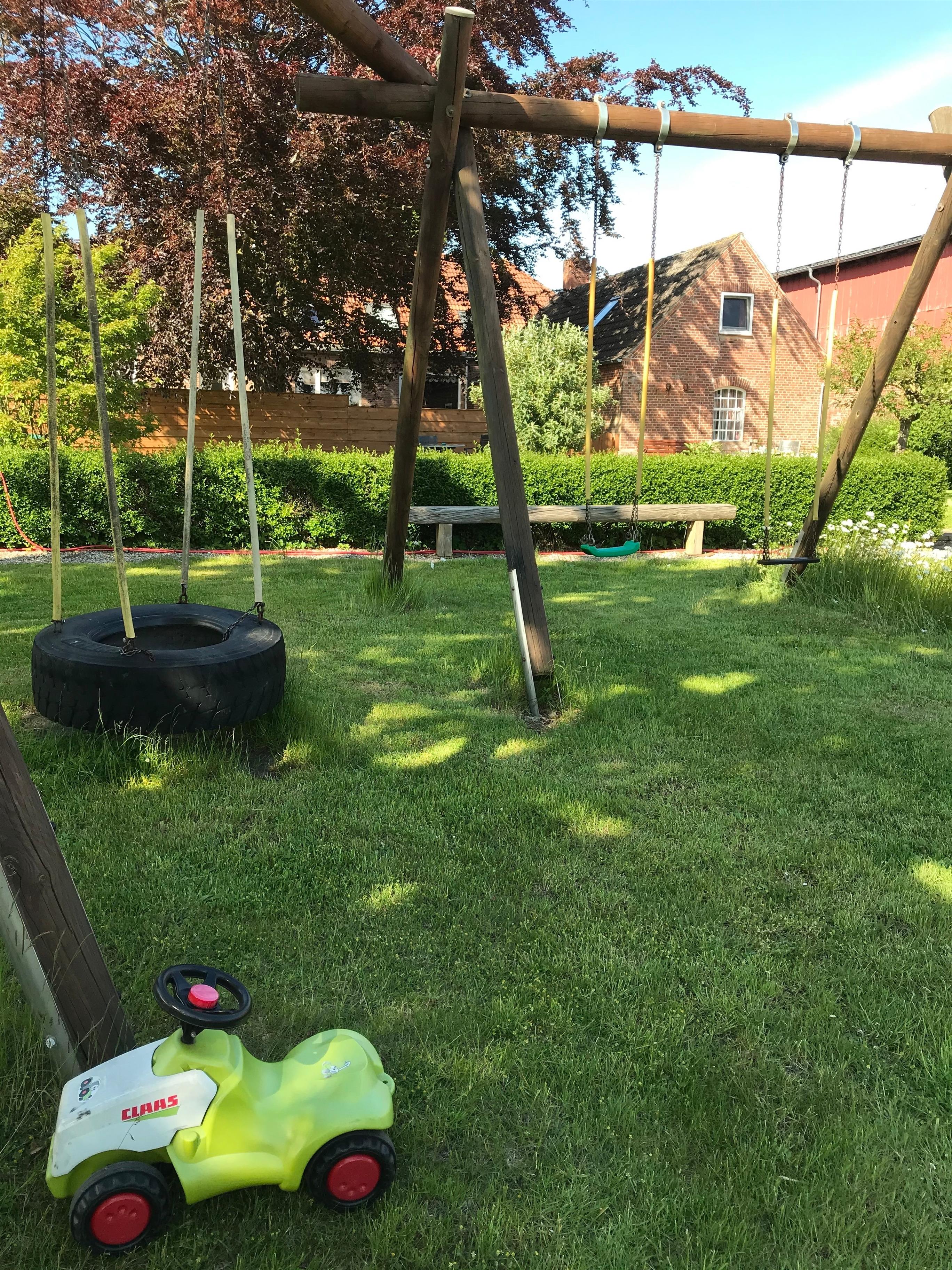 Der Hof bietet viel Platz für Erholung: In unserem großzügig angelegten Bauerngarten mit Strandkorb, Sitzecken und Liegewiese findet jeder seinen Lieblingsplatz. Haben Sie den Willen zum Grillen - kein Problem. Für die jüngsten Gäste gibt es viel zu entdecken: ein spannender Spielplatz mit Tischtennis, das große Trampolin und natürlich unsere verschmuste Katze Lucy.