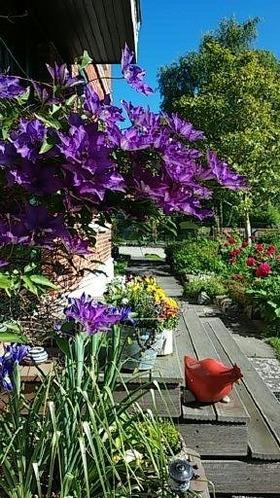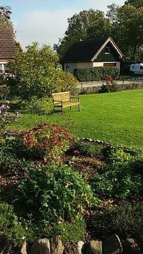 Auf der großen Rasenfläche vor dem Haus können Sie es sich u.a. gemütlich machen. Die angrenzende Terrasse mit Blick in den schönen Garten, kann genutzt werden, hier stehen Bank, Tisch und Stühle für Sie bereit. Sitzauflagen sind vorhanden und auf Wunsch auch ein Grill.
