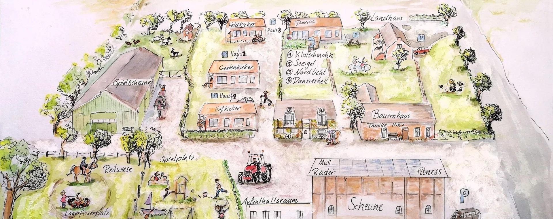 Auf dem Spielplatz mit Trampolin können die Kleinen sich richtig austoben, mit den Fahrzeugen (Dinocars) geht es auf Entdeckungstour und beim Ponyreiten und Tierefüttern von Katzen, Kaninchen, Ziegen und Hühner werden neue Freundschaften geschlossen. In unserer Spielscheune beim Basketball, im Gartenhaus beim Kickerspielen oder in der Tischtennishalle vergeht die Zeit bei schlechtem Wetter wie im Fluge. Immer wieder ein Highlight für große und kleine Gäste die landwirtschaftliche Planwagenfahrt mit dem Bauern zur Rinderweide. Während der Tour schnacken und klönen die Großen mit dem Bauern und die Kleinen haben Ihren Spaß beim Landwirtschaftsquiz. Schließlich ist auf einen Bauernhof immer was los und es gibt ne Menge zu entdecken! Auch bei den gemeinsamen Grillabenden am Gartenhaus sind schon so manche Freundschaften entstanden.
