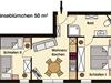 Die Wohnung Gänseblümchen ist 50 m² groß und liegt im Dachgeschoß des ehemaligen Bauernhauses. Sie umfasst zwei Schlafräume, davon einen mit Doppelbett und ein Kinderschlafzimmer mit einem Einzelbett, das zu einem Doppelbett ausziehbar ist. Ein Babybettchen kann in jedes der beiden Schlafzimmer gestellt werden.