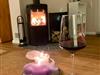 Das helle, großzügige Wohnzimmer mit einem großen gemütlichen Ecksofa für die ganze Familie lädt zum Entspannen vor dem umweltfreundichen neuen Kaminofen oder bei einem guten Film (Sat-TV und DVD Player vorhanden) ein. Das Wohnzimmer wurde 2025 fast komplett neu und hochwertig möbliert und erhielt in diesem Zuge auch einen neuen umweltfreundlichen Kaminofen.