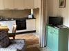 Sie verfügt über einen gemütlichen Wohn-Schlafraum mit zwei Einzelbetten, Küche, Duschbad, WC sowie einer separaten Terrasse.