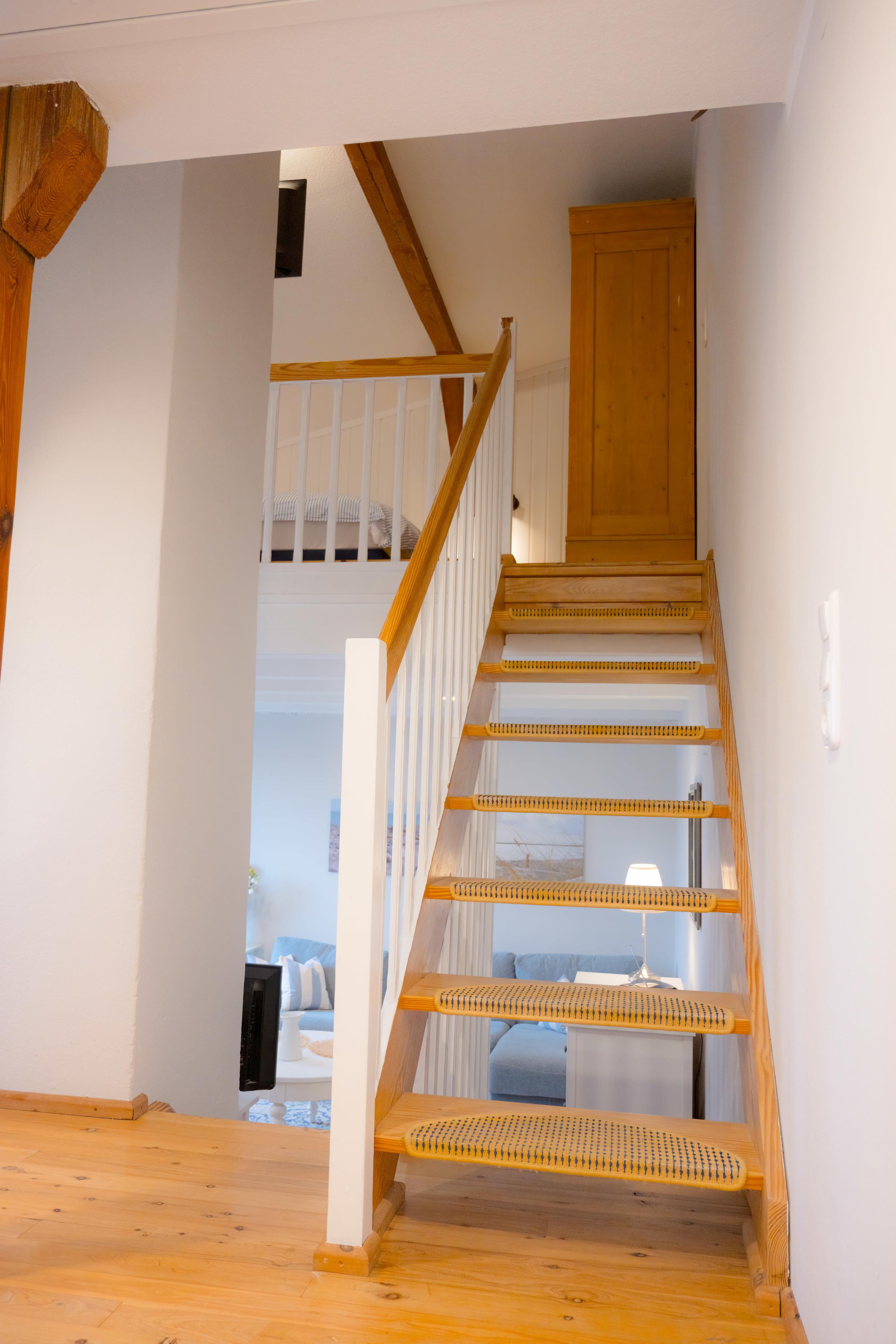Im liebevoll ausgebautem Scheunentrakt auf einem 21ha großen Hof- und Gartengrundstück, in der 1. Etage, liegt diese hübsche Maisonette-Wohnung. Offen geschnitten, mit drei Halbwohnebenen, bietet die Wohnung das besondere Etwas für Ihren Urlaub. Fühlen Sie sich wohl auf einer Wohn-/ Schlafebene, einer Schlafgalerie mit Doppelbett und dem Essplatz mit Küchenzeile auf halber Höhe. Für Ihren Kaffee in der Sonne lädt der sonnige Balkon ein. Herrlich für die Kinder: Die Spielwiese und der Tennisplatz sind ganz schnell zu erreichen.