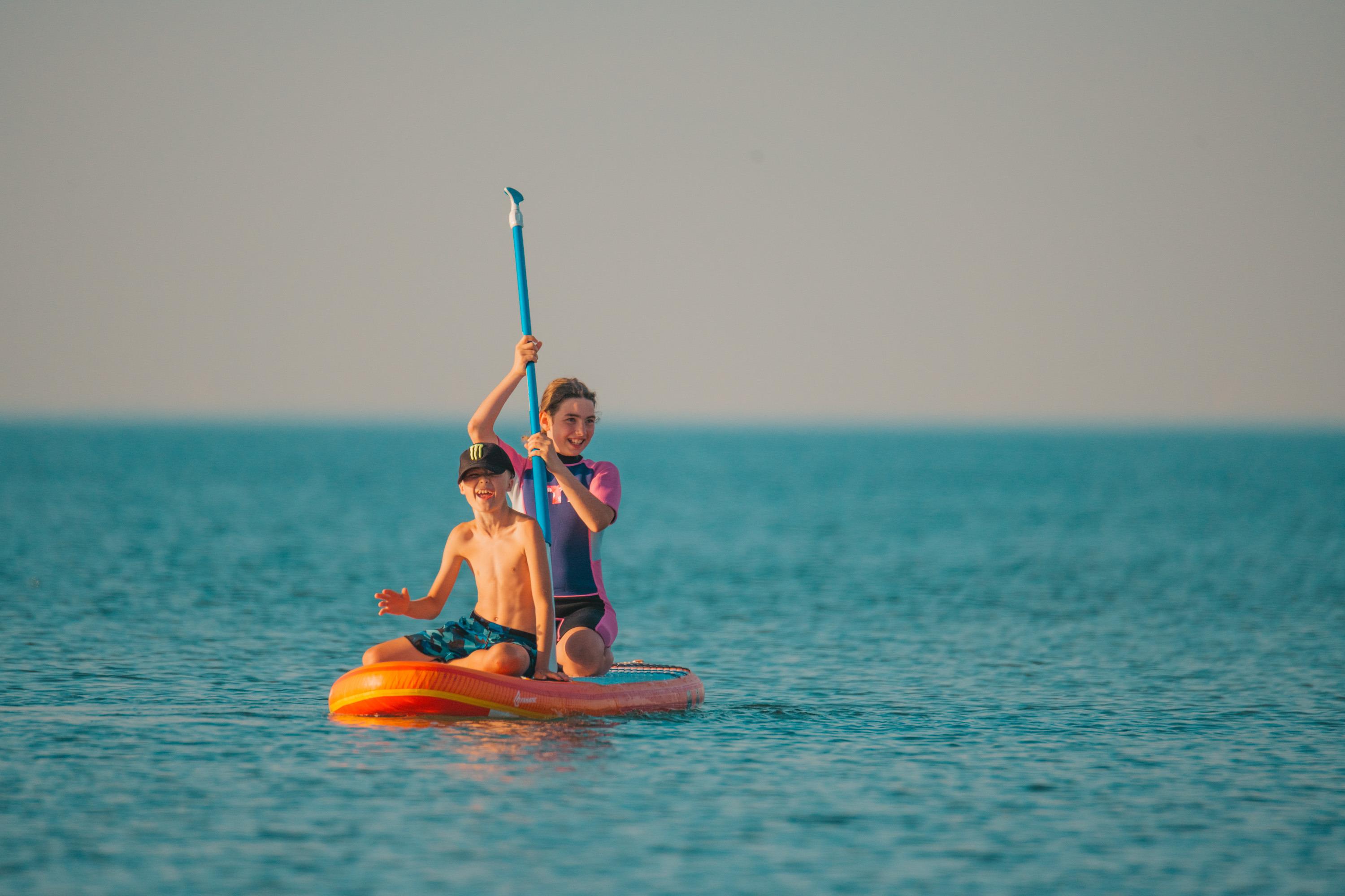 Boards zum Stand-up-Paddling sind auf dem Hof ausleihbar. Die Sauna wird auf Wunsch jederzeit angestellt.